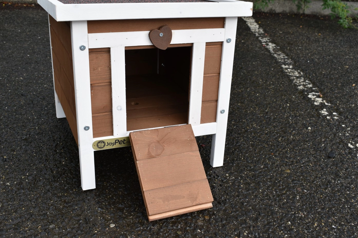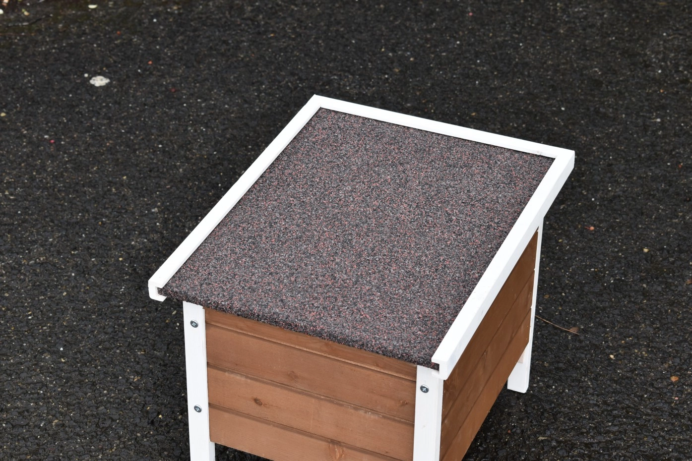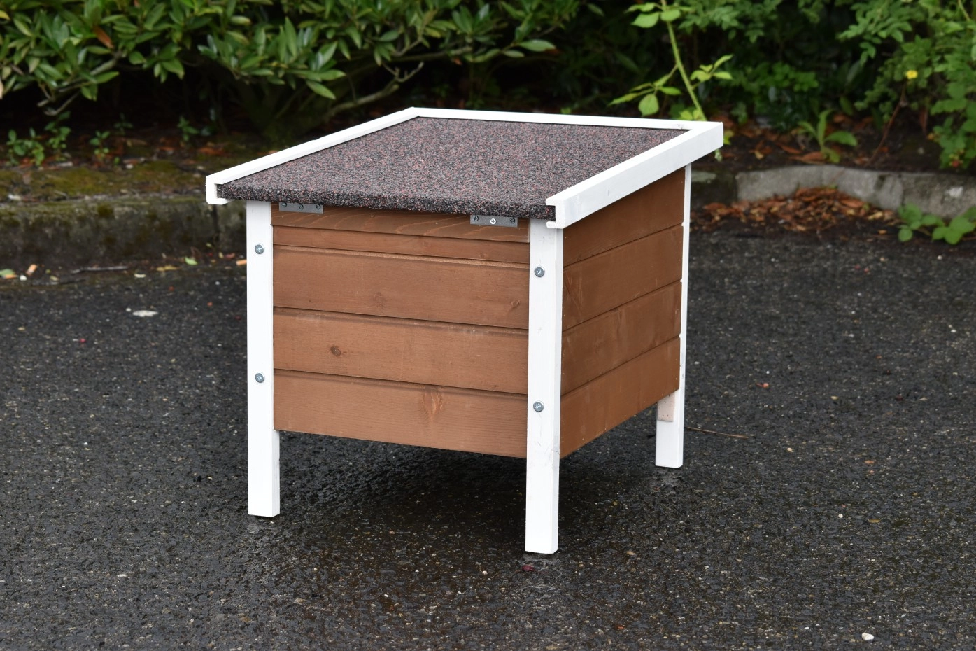 Kattenhuis Petit is een klein, maar handig kattenhuisje. Het bezit een scharnierdak en omdat het huisje zo klein is, is het schoonmaken zo gebeurd. Het kattenhuis Petit is klein en compact. Dit betekent ook dat deze eenvoudig te verplaatsen is. Het kattenhuis kan bijvoorbeeld in een kattenren worden geplaatst, als schuilhok. De maximale afmetingen, inclusief dak, zijn 42x51x43cm.