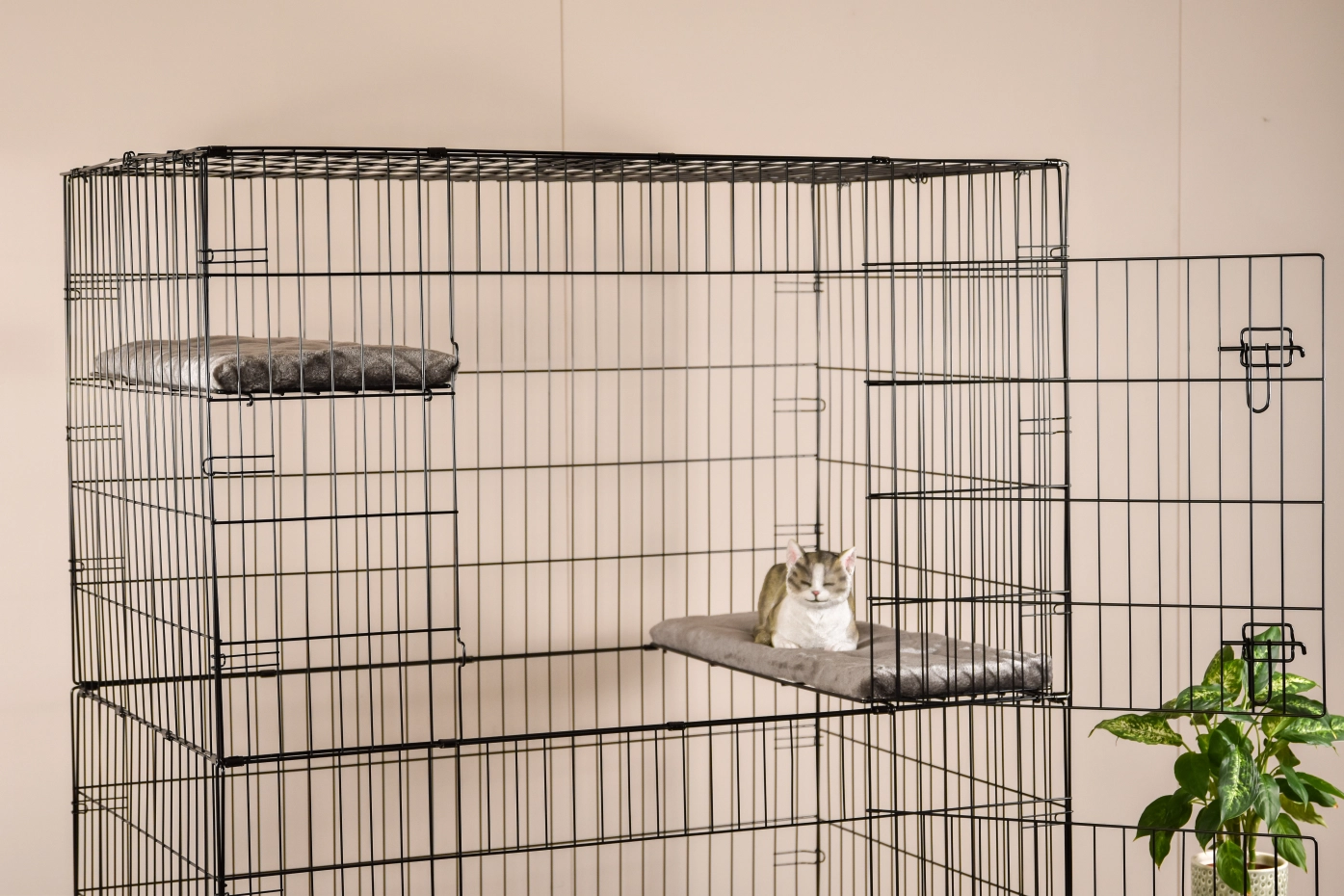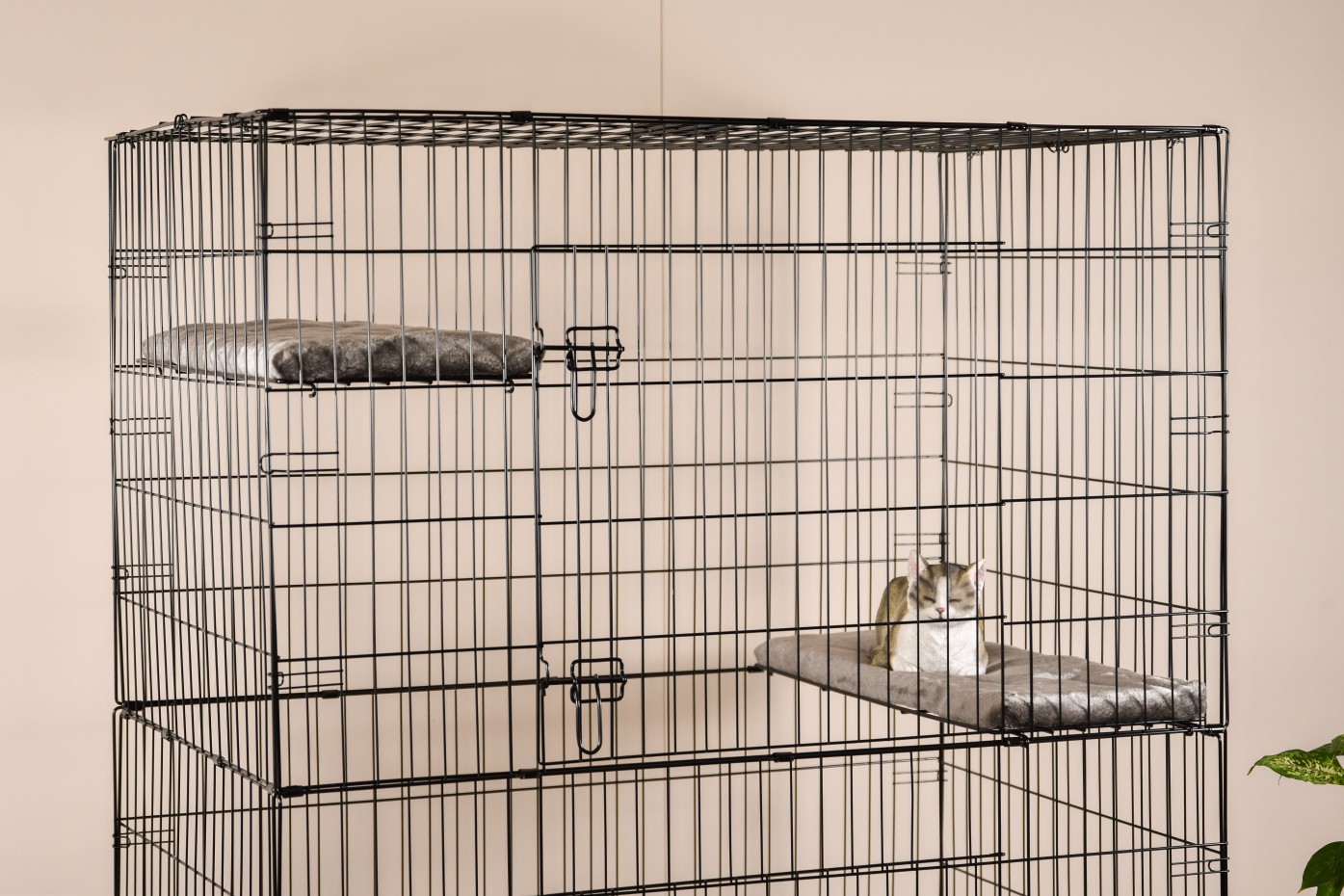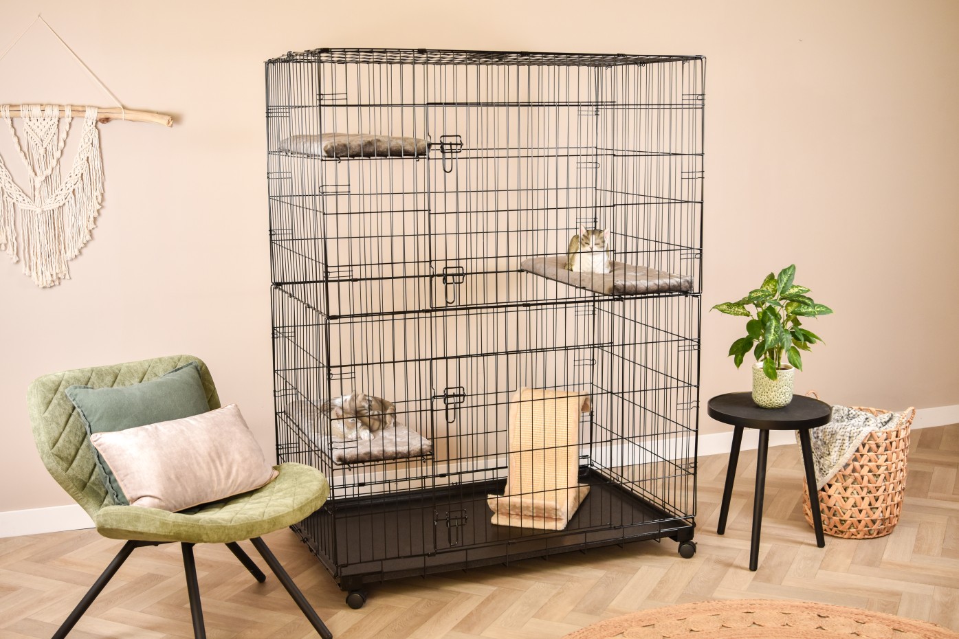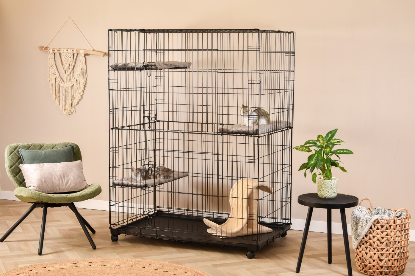 - Degelijke kattenkooi met zwart gepoedercoate tralies