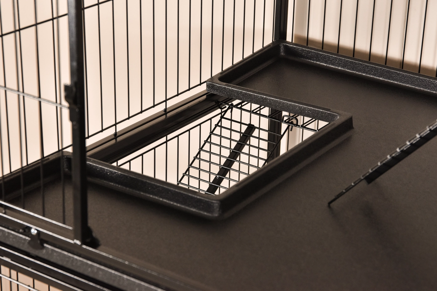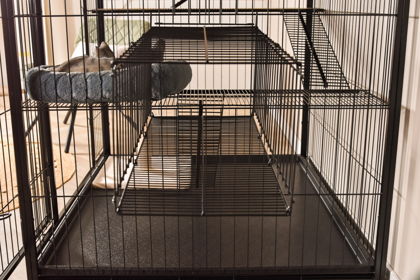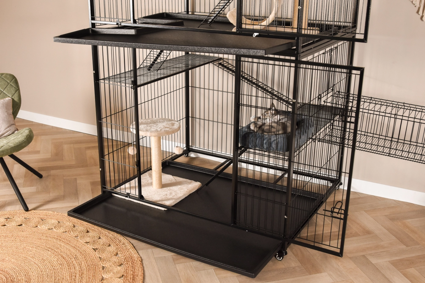 • Degelijke kattenkooi met zwarte hamerslag gecoate tralies
