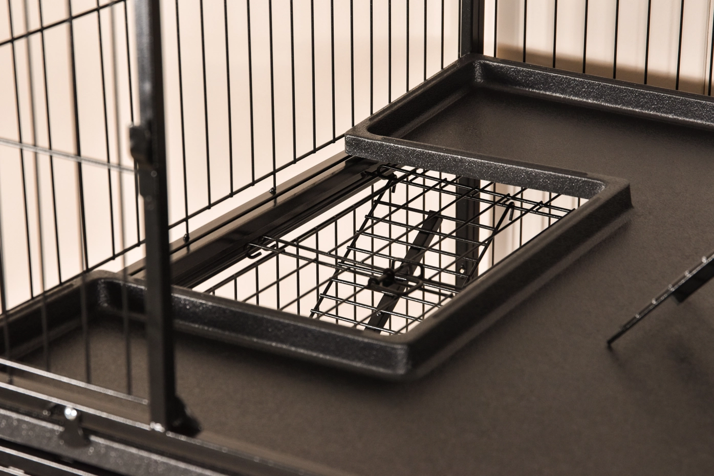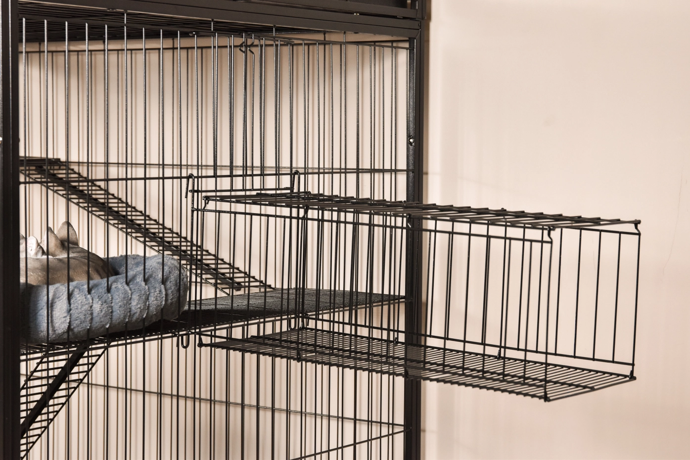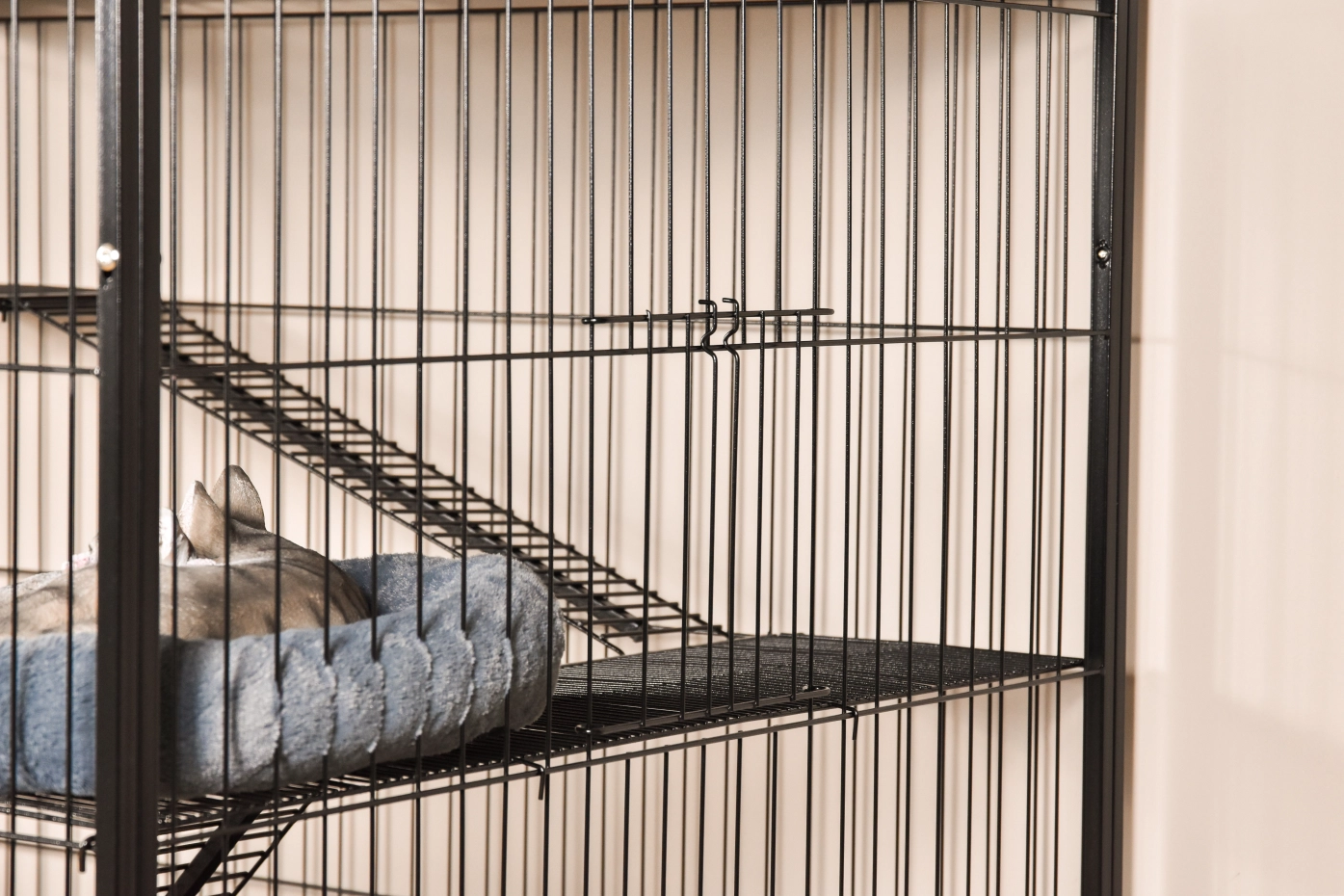 • Degelijke kattenkooi met zwarte hamerslag gecoate tralies