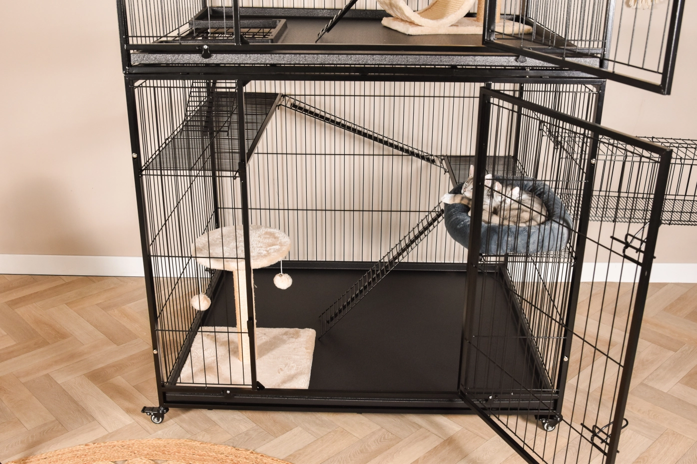 • Deze kattenkooi is voorzien van 2 stevige deuren met sluitingen