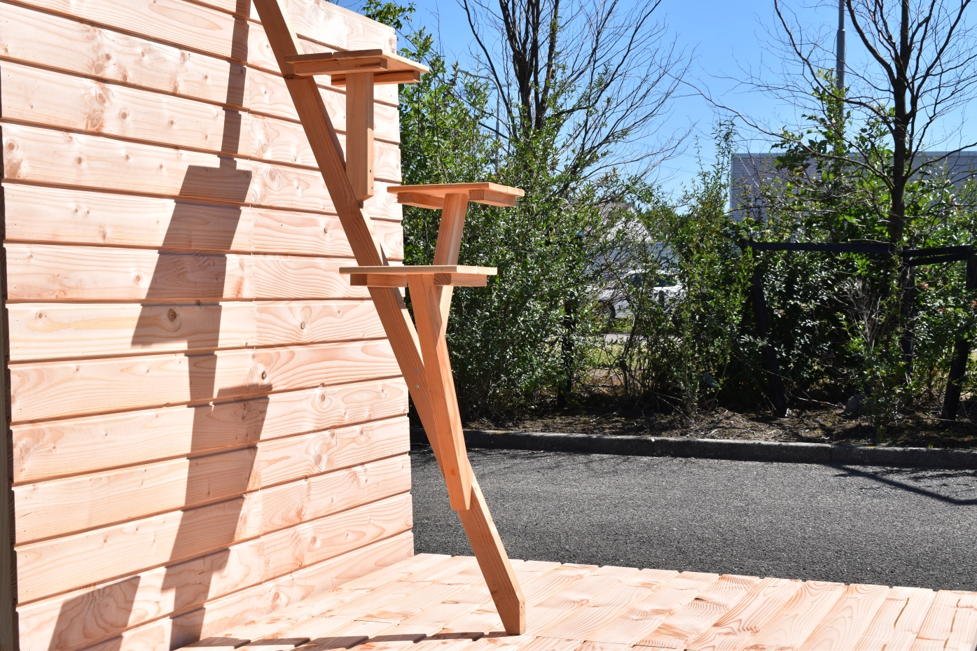 - Onbehandeld Douglashout met een gemiddelde levensduur van ca. 15 jaar. Behandeling is niet nodig. Wel zal het hout vergrijzen door de zon.