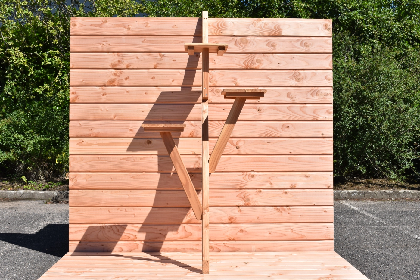 Kattenklimpaal van prachtig Douglashout. Deze kattenklimpaal is gemakkelijk in uw Flex kattenren te plaatsen. De klimpaal met ligplateau's voor poezen of katers, wordt geleverd inclusief schroeven om de klimpaal te monteren. (Montage of plaatsing op het gras of in de grond is niet voorzien).