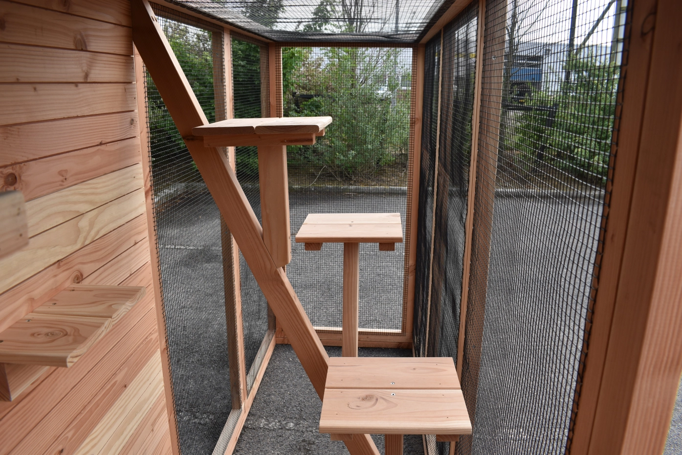 De kattenklimpaal heeft een afmeting van 90x85x180cm (BxDxH). De ligplateaus hebben een breedte van 28cm. De plateaus zijn gemonteerd op een hoogte van ongeveer 90, 115 en 150 cm.