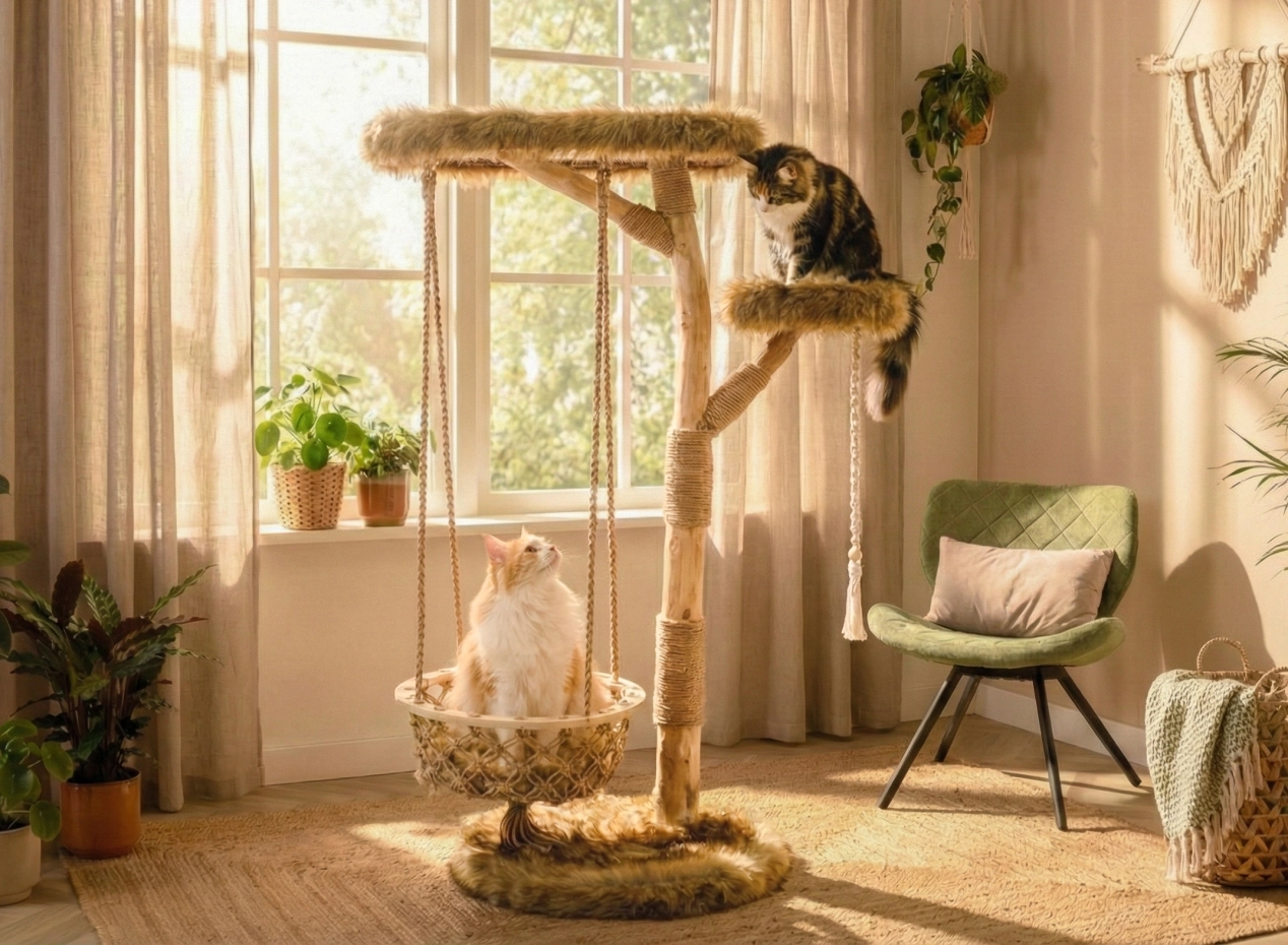 Wil je een krabpaal die meer is dan standaard? De Boony Est 1941 krabpaal combineert natuurlijke houten stammen met een luxe uitstraling. Elke krabpaal is uniek door de vorm van het hout. De zware bodemplaat zorgt voor stabiliteit en de twee plateaus zijn bekleed met zacht bruin pluche. Met sisal om te krabben en een speeltouw voor extra speelplezier. De krabpaal heeft zelfs een mand, zodat uw kat lekker kan relaxen! Deze stevige kattenkrabpaal is geschikt voor grote katten, zoals maine coons. Hoogte: 151 cm.