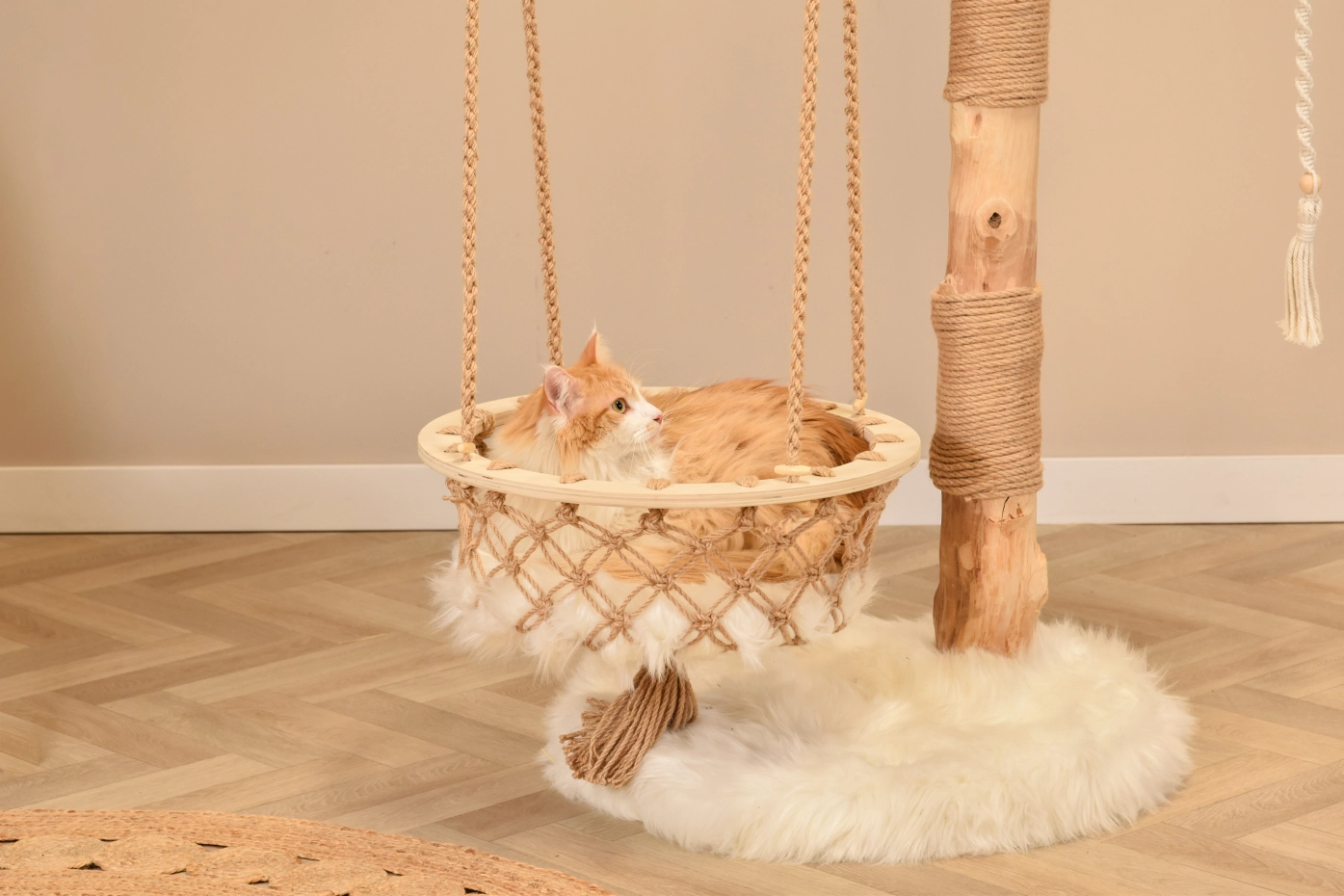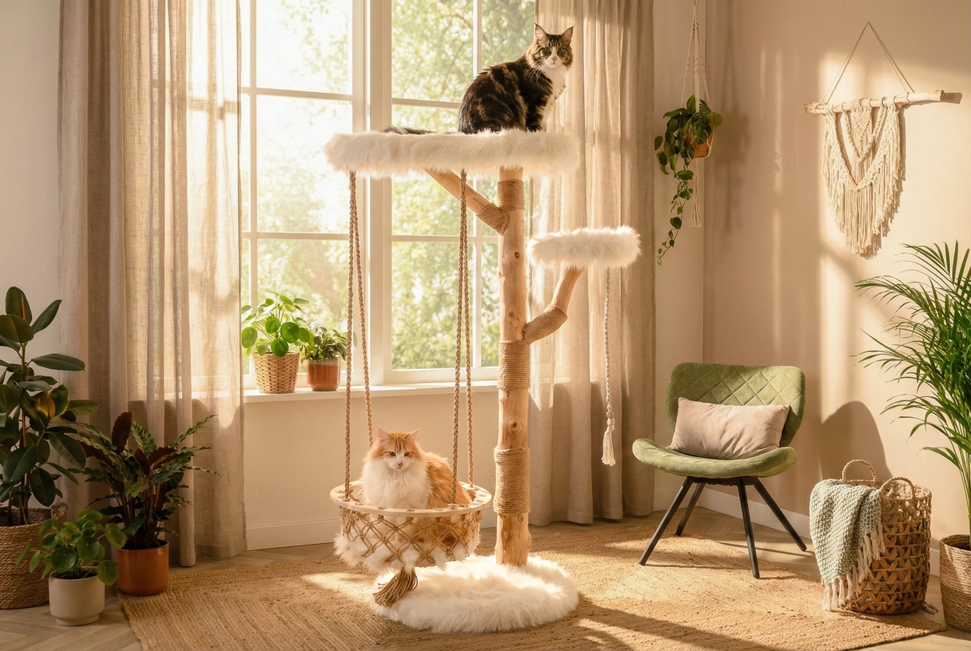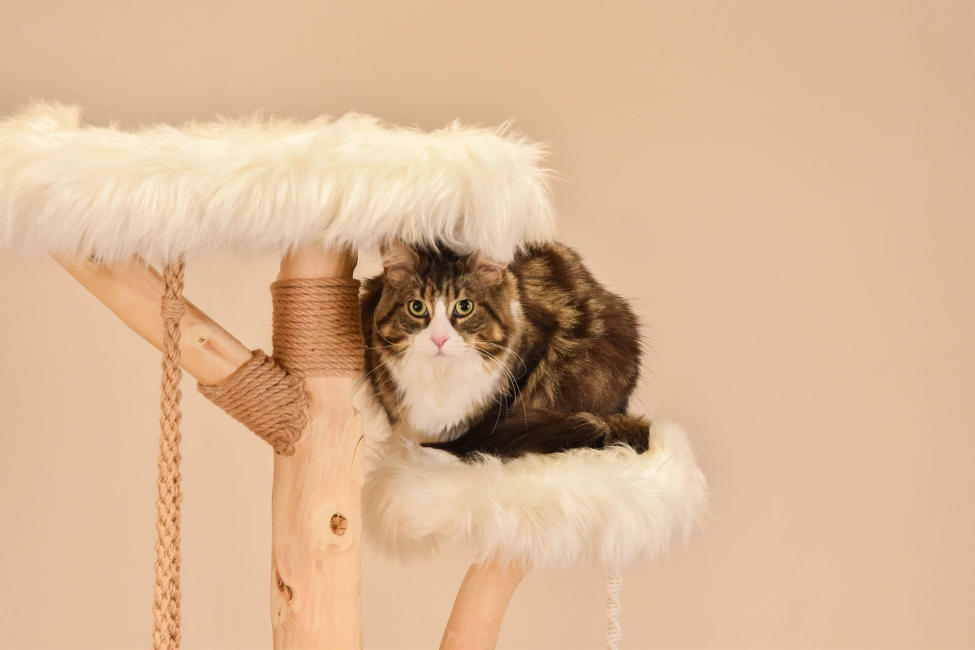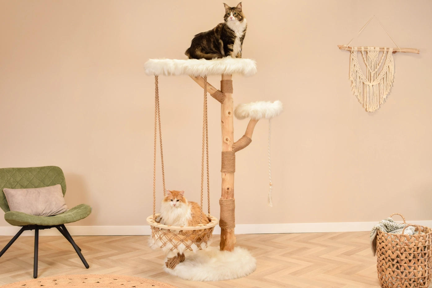 Wil je een krabpaal die meer is dan standaard? De Boony Est 1941 krabpaal combineert natuurlijke houten stammen met een luxe uitstraling. Elke krabpaal is uniek door de vorm van het hout. De zware bodemplaat zorgt voor stabiliteit en de twee plateaus zijn bekleed met zacht wit pluche. Met sisal om te krabben en een speeltouw voor extra speelplezier. De krabpaal heeft zelfs een mand, zodat uw kat lekker kan relaxen! Deze stevige kattenkrabpaal is geschikt voor grote katten, zoals maine coons. Hoogte: 151 cm.