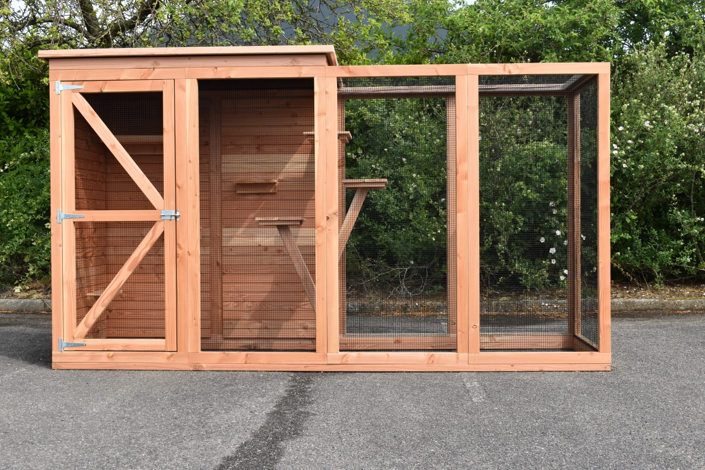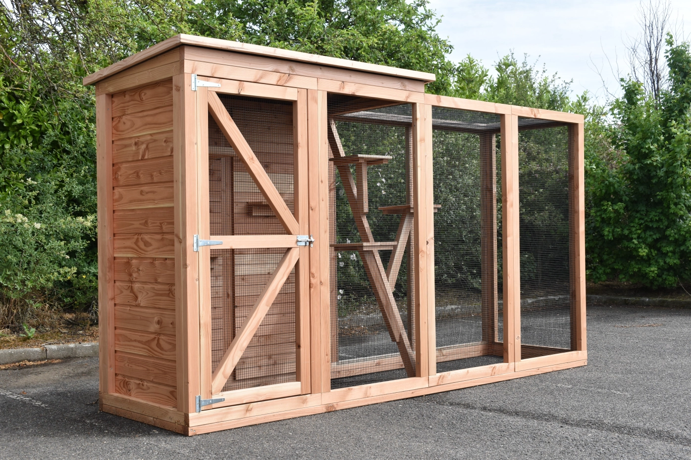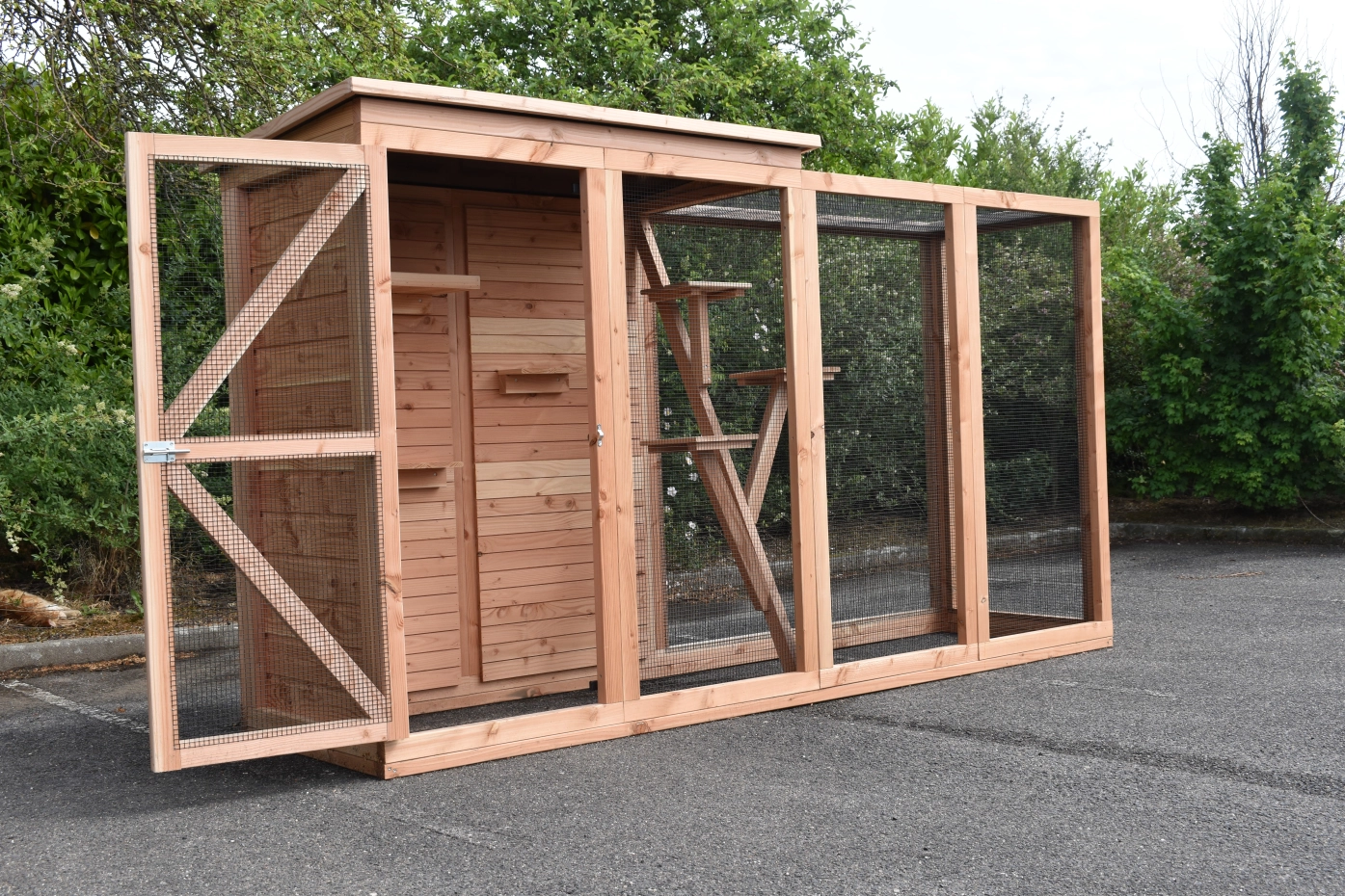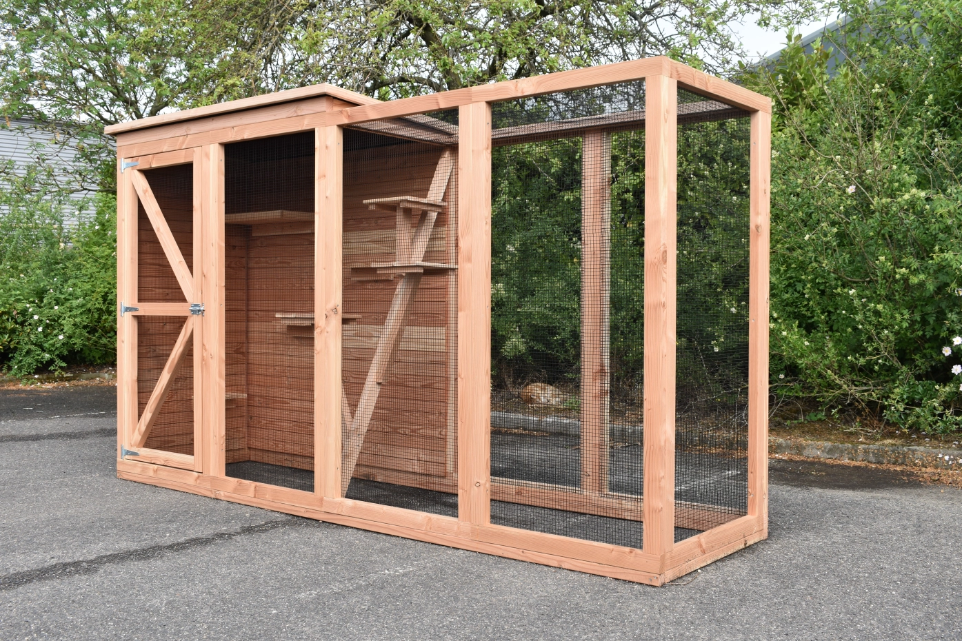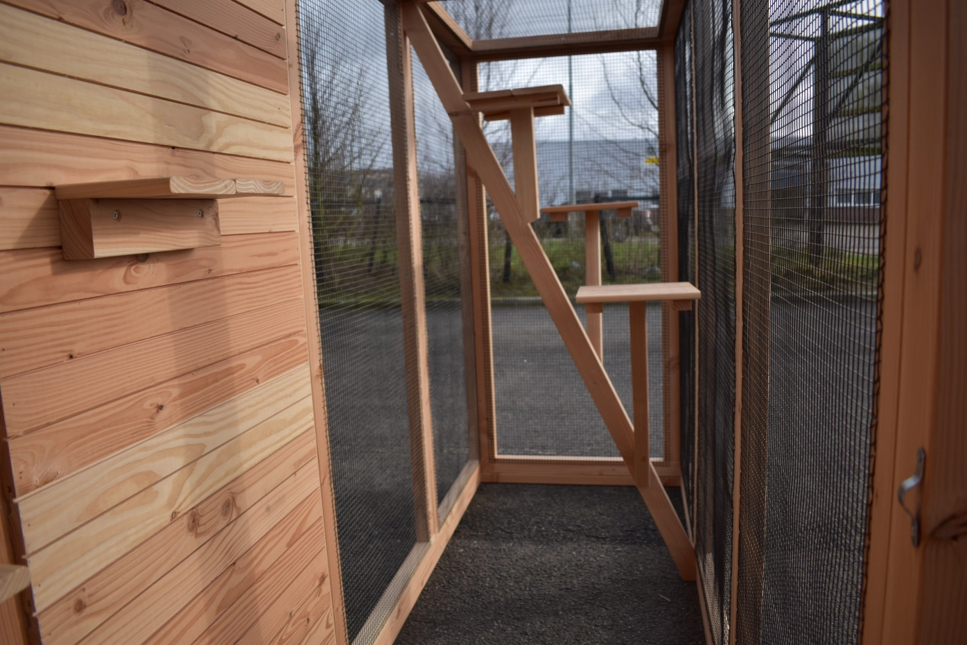 Kattenren Flex 4.1 is een prachtig, praktisch en luxe poezenverblijf om uw poezen of katten in te huisvesten op het balkon, in de tuin, of in huis. Een deel van de kattenren is voorzien van een dicht dak, en een deel heeft een gaasdak. Deze samengestelde kattenren kan eenvoudig uitgebreid of aangepast worden. Deze kattenren wordt geleverd zonder ligplateau, klimplankjes en klimpaal, deze zijn los mee te bestellen.