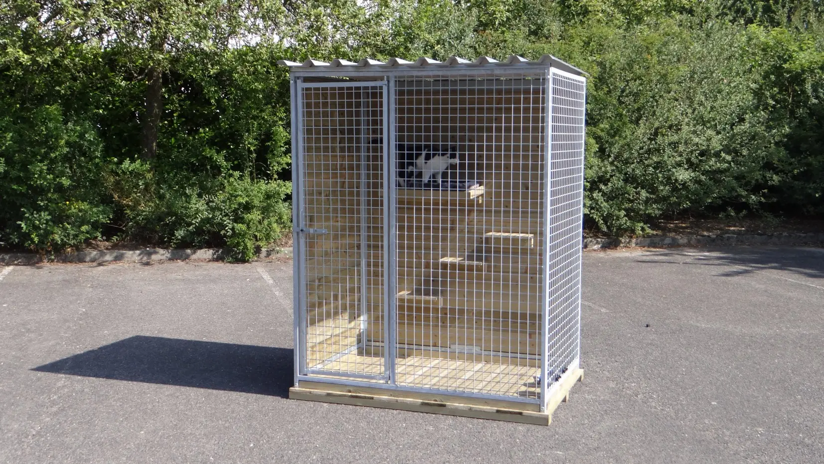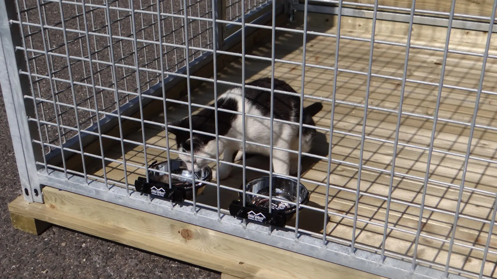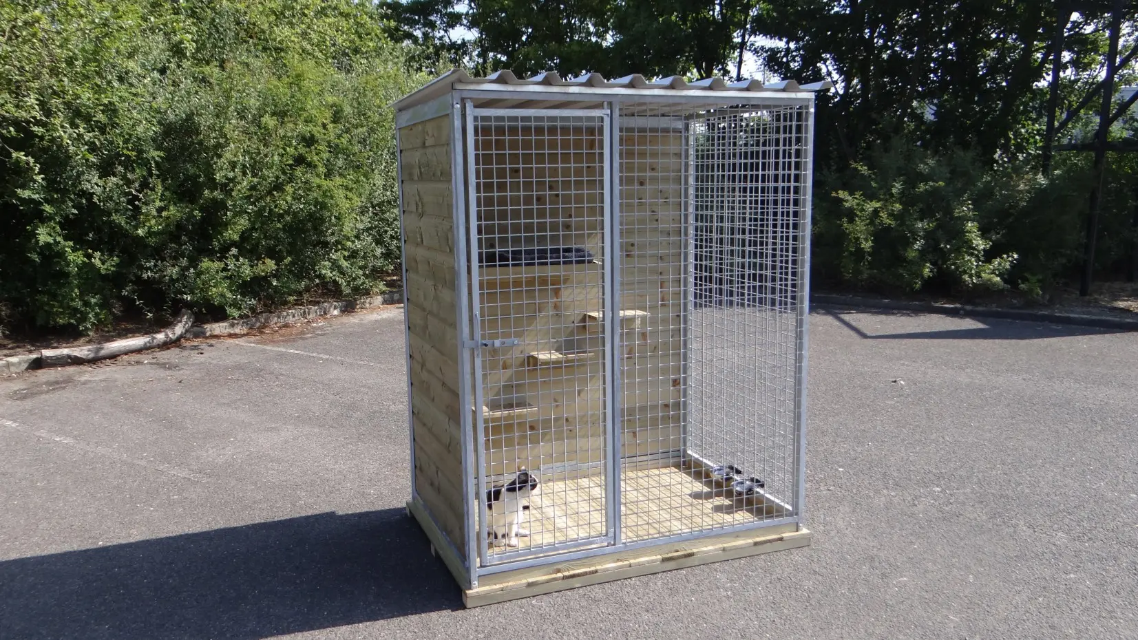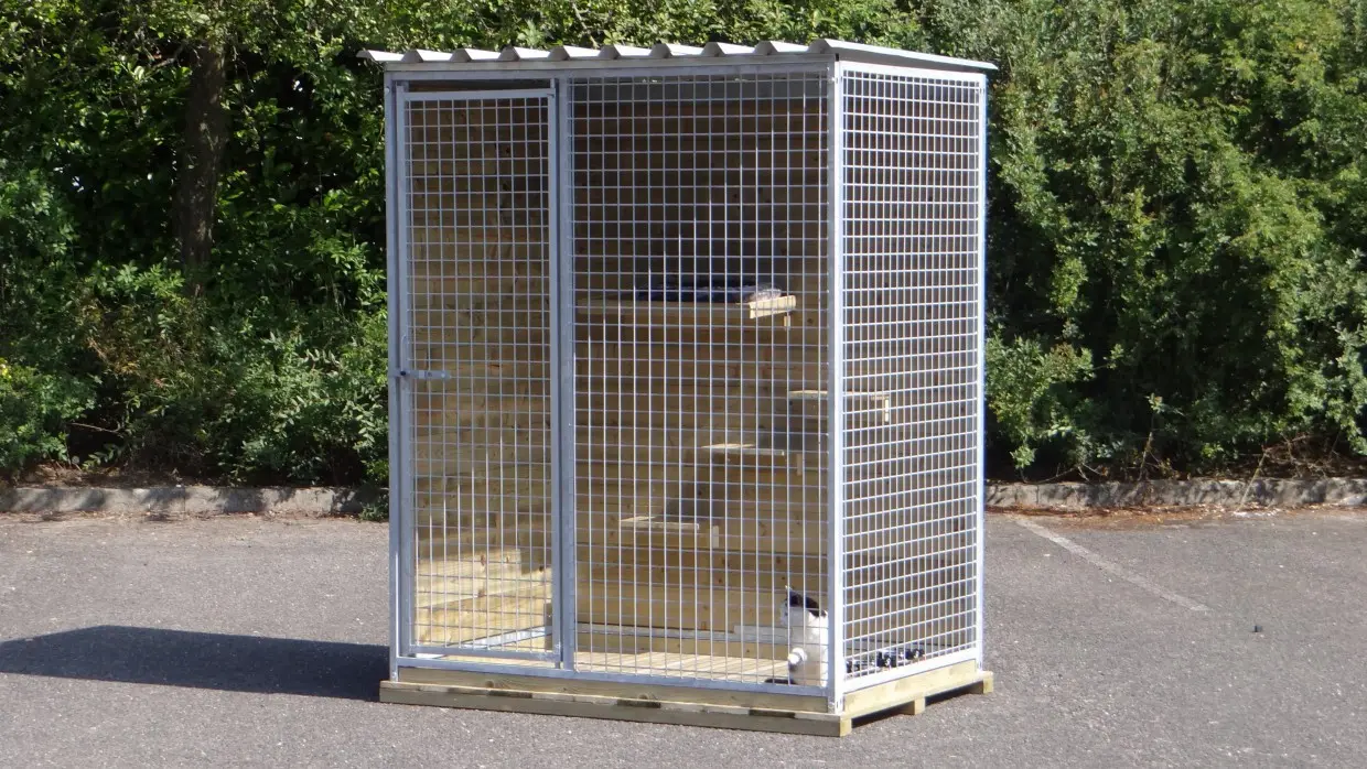 - De kennel is voorzien van afsluitlatten aan de onderkant zodat er niet onderdoor gekropen kan worden.