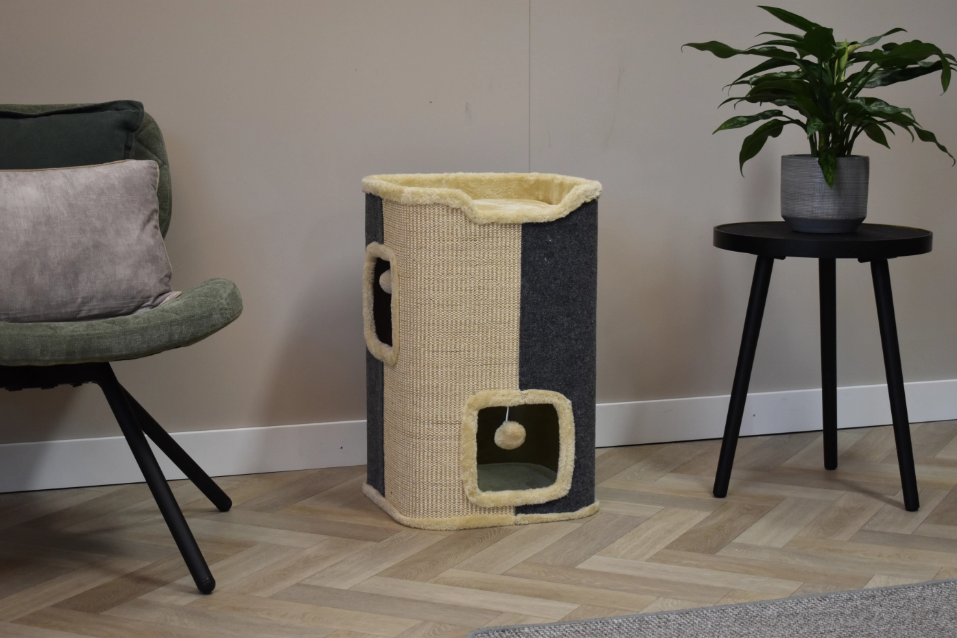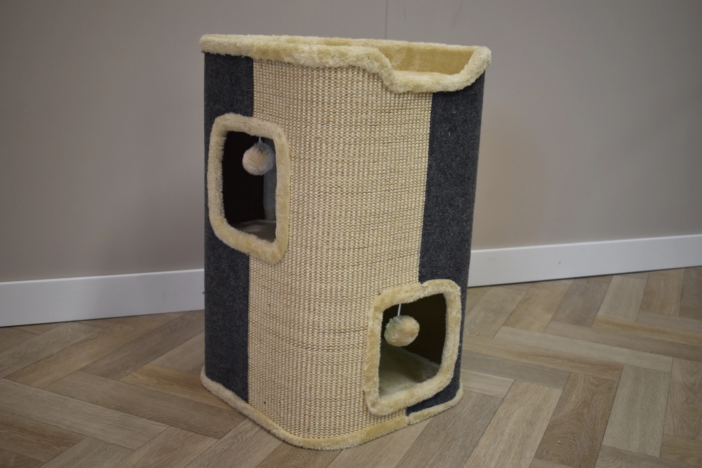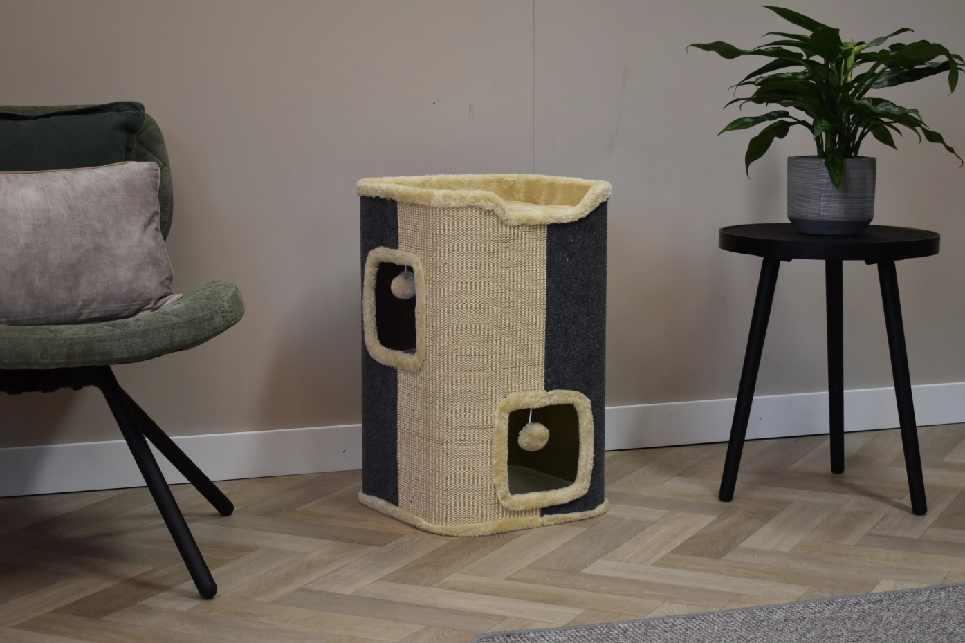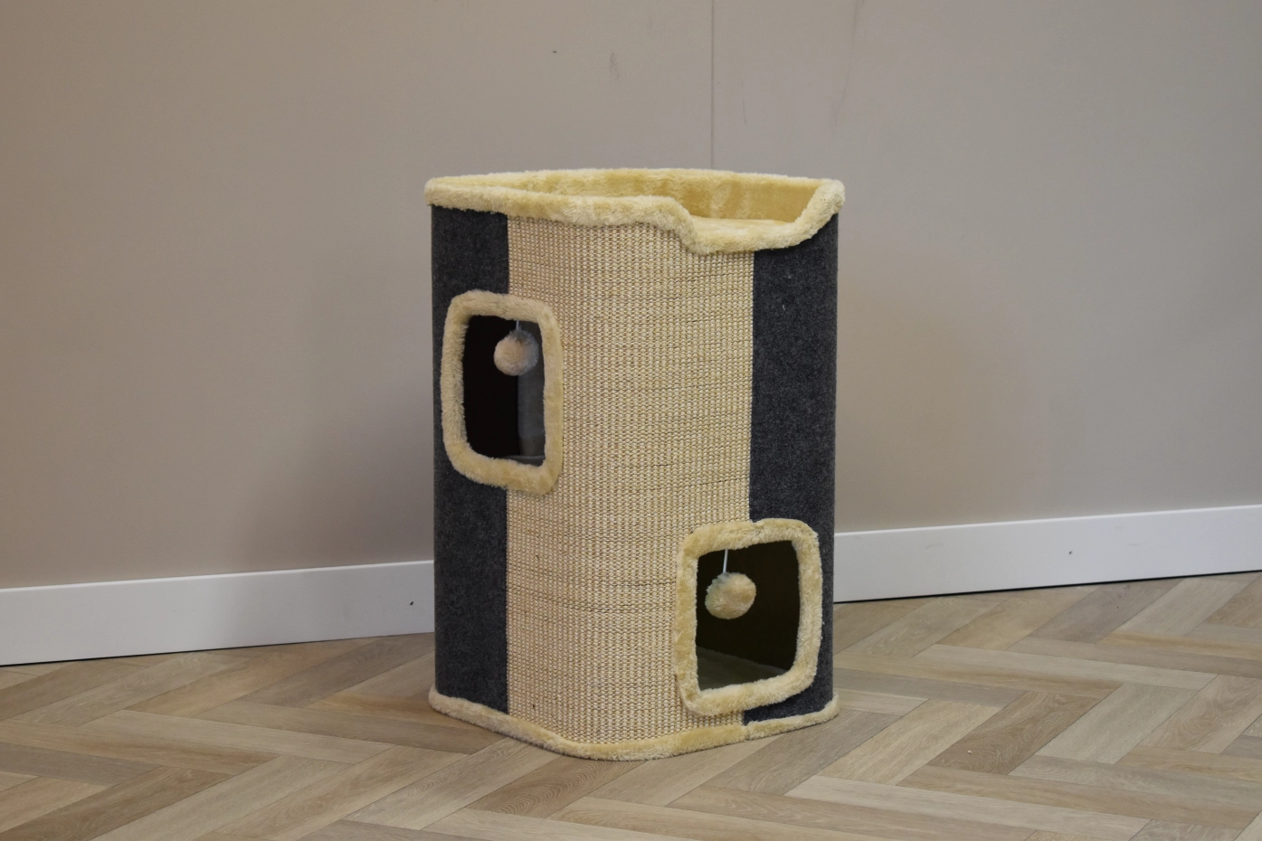 Krabton Kaatje is een krabton met 2 verdiepingen. De ton is voor een deel bekleed met sisal, zodat uw kat voldoende mogelijkheden heeft om z'n nagels te scherpen. Een praktisch krabmeubel met 2 ruimtes waarin uw poes of kater zich ook even terug kan trekken. Bovenop de krabton bevindt zich ook nog een ligplateau, zodat uw kat lekker rond kan kijken. In de krabton zelf zit er geen opening tussen de verdiepingen.