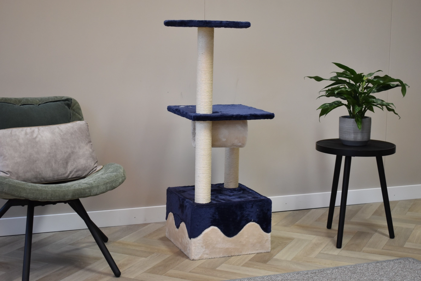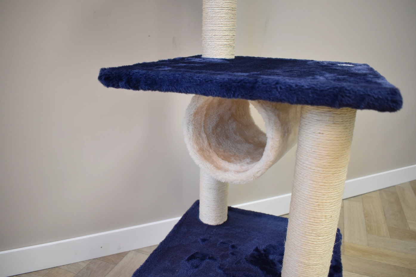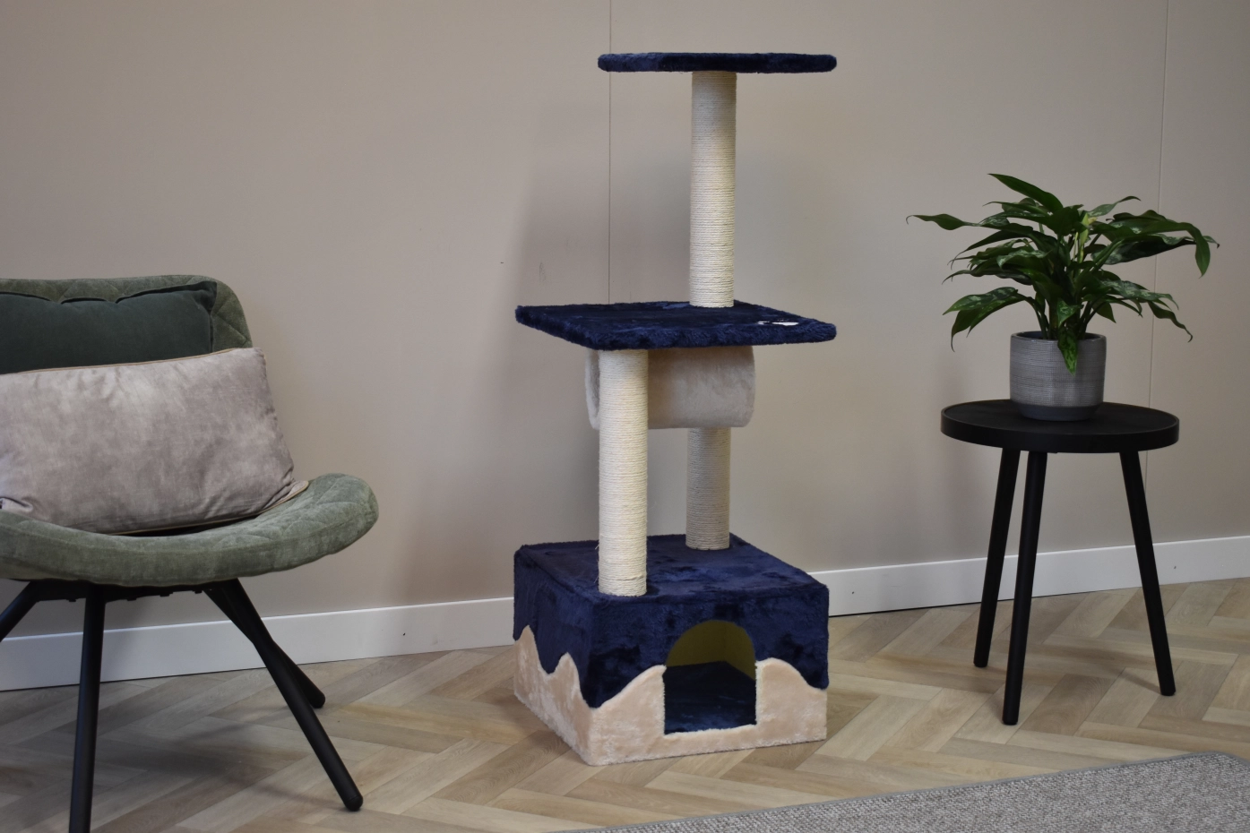 Krabpaal Kailey biedt veel speelplezier voor uw kat(ten)! Deze krabpaal met sisal heeft een ligplateau, een huisje om in te schuilen en een tunnel om lekker in te verschuilen! Dit leuke kattenmeubel is geschikt voor kittens en kleine tot middelgrote katten.