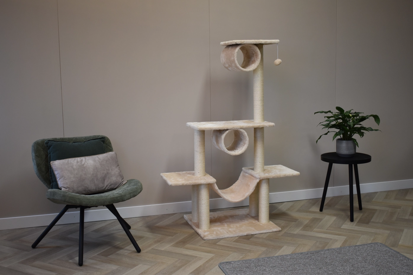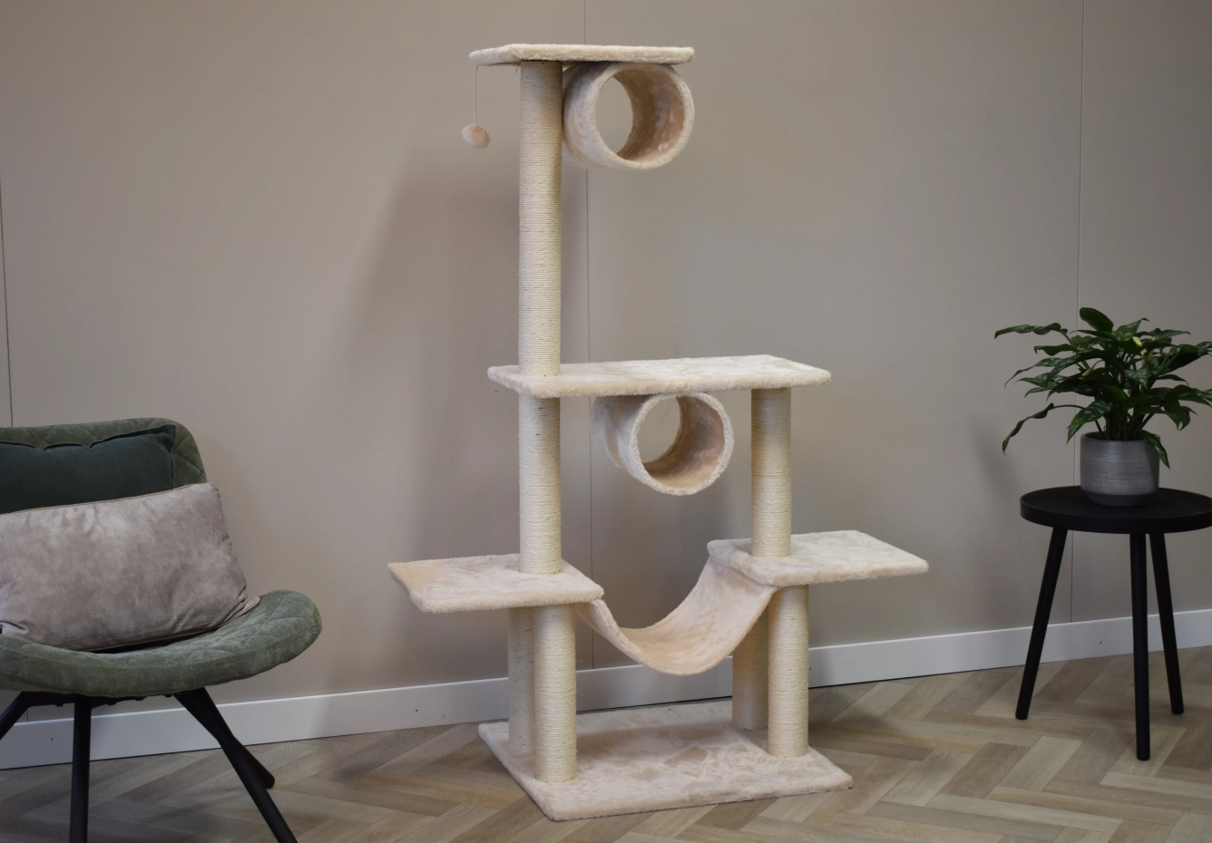 De krabpaal Katinka zorgt voor veel krab-, relax- en speelplezier voor uw kat. De krabpaal heeft verschillende ligplateaus, sisal krabpalen, een hangmat en 2 zachte rollen. Dit veelzijdige kattenmeubel is geschikt voor kittens en kleine tot middelgrote katten.