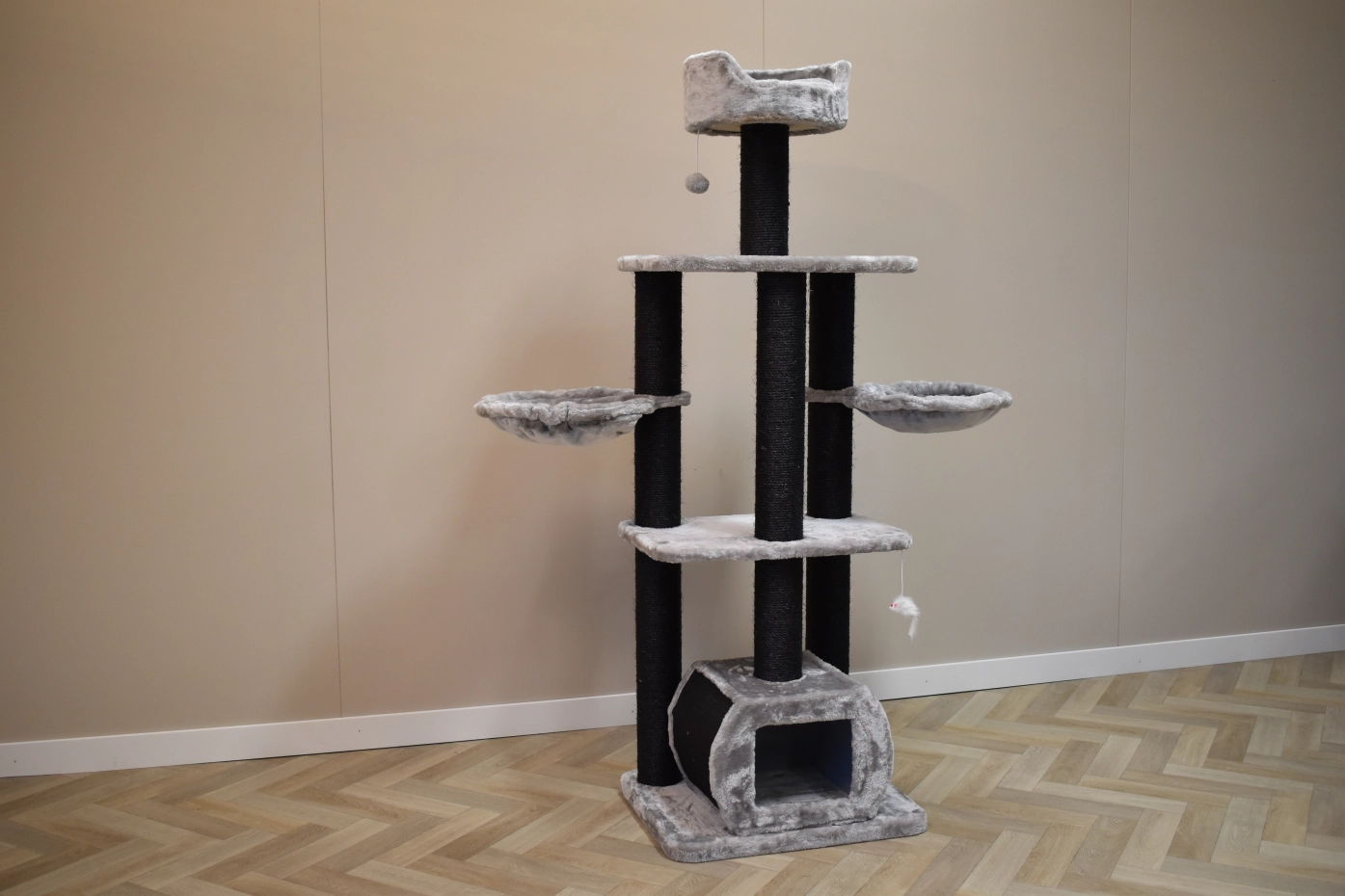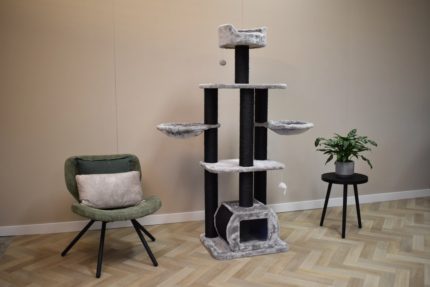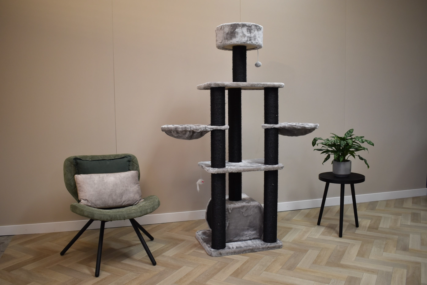 De krabpaal Katrien biedt veel speelplezier voor uw kat(ten). De krabpaal heeft ligplateaus, mandjes, sisal krabpalen en een huisje om heerlijk in weg te kruipen. Dit mooie kattenmeubel is geschikt voor kittens en kleine tot middelgrote katten.
