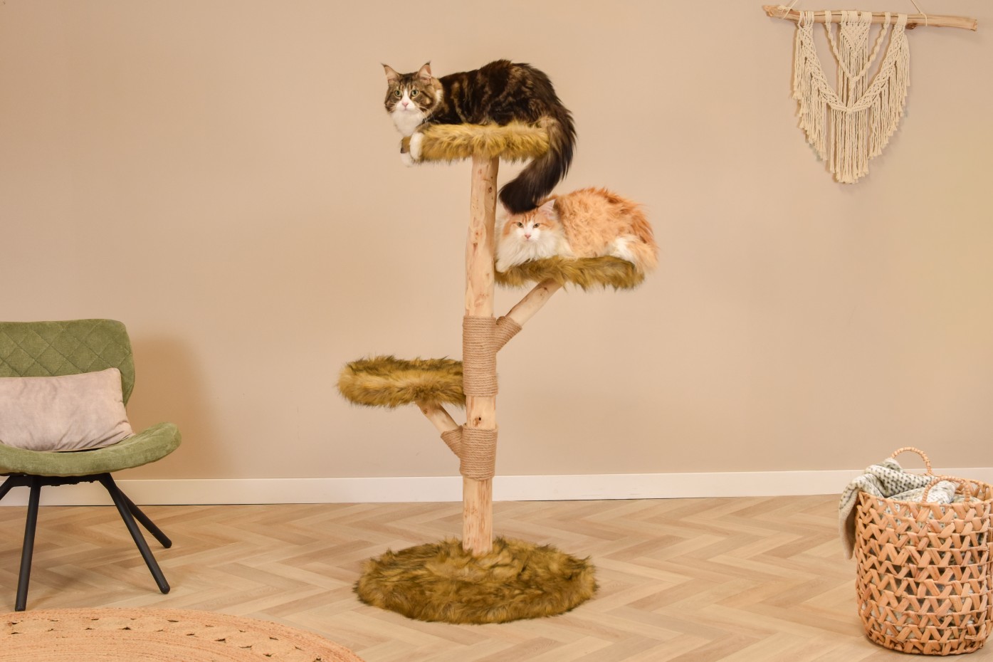 Wil je een krabpaal die meer is dan standaard? De Boony Est 1941 krabpaal combineert natuurlijke houten stammen met een luxe uitstraling. Elke krabpaal is uniek door de vorm van het hout. De zware bodemplaat zorgt voor stabiliteit en de twee plateaus zijn bekleed met zacht bruin pluche. Met sisal om te krabben en een speeltouw voor extra speelplezier. Deze stevige kattenkrabpaal is geschikt voor grote katten, zoals maine coons. Hoogte: 129 cm.