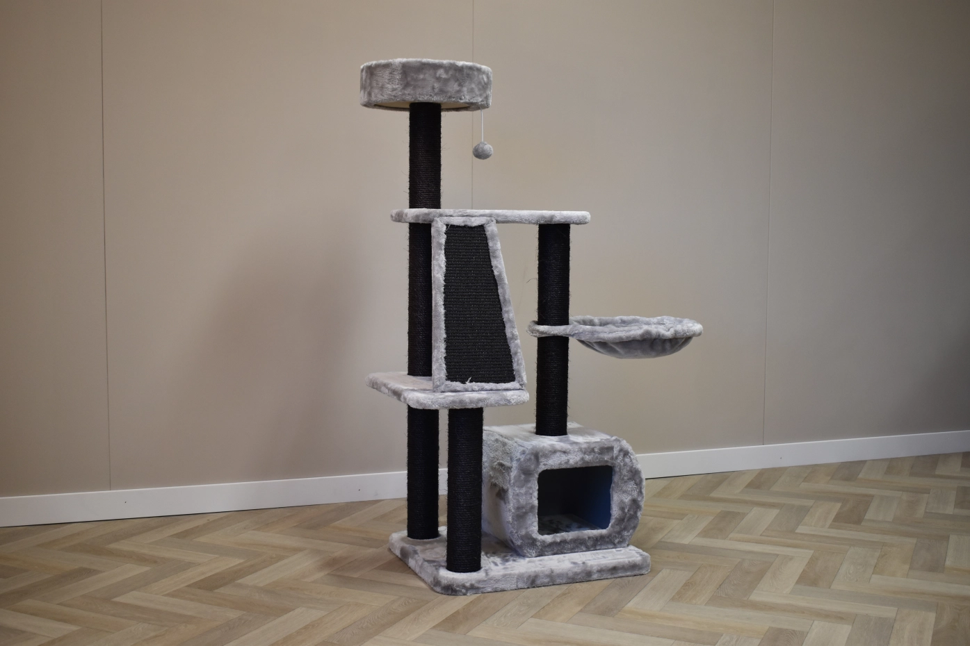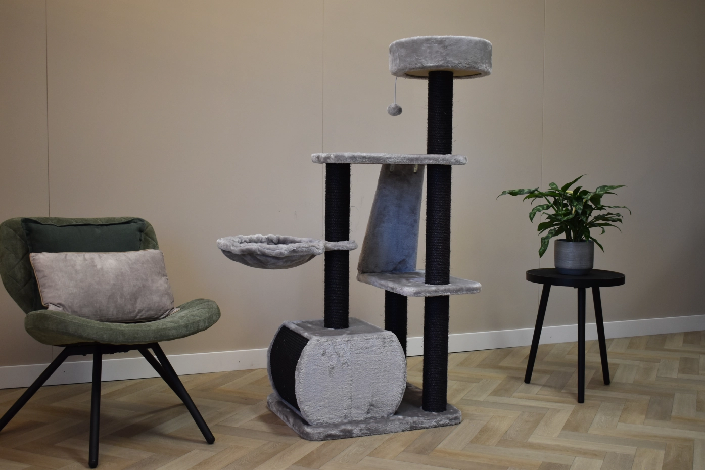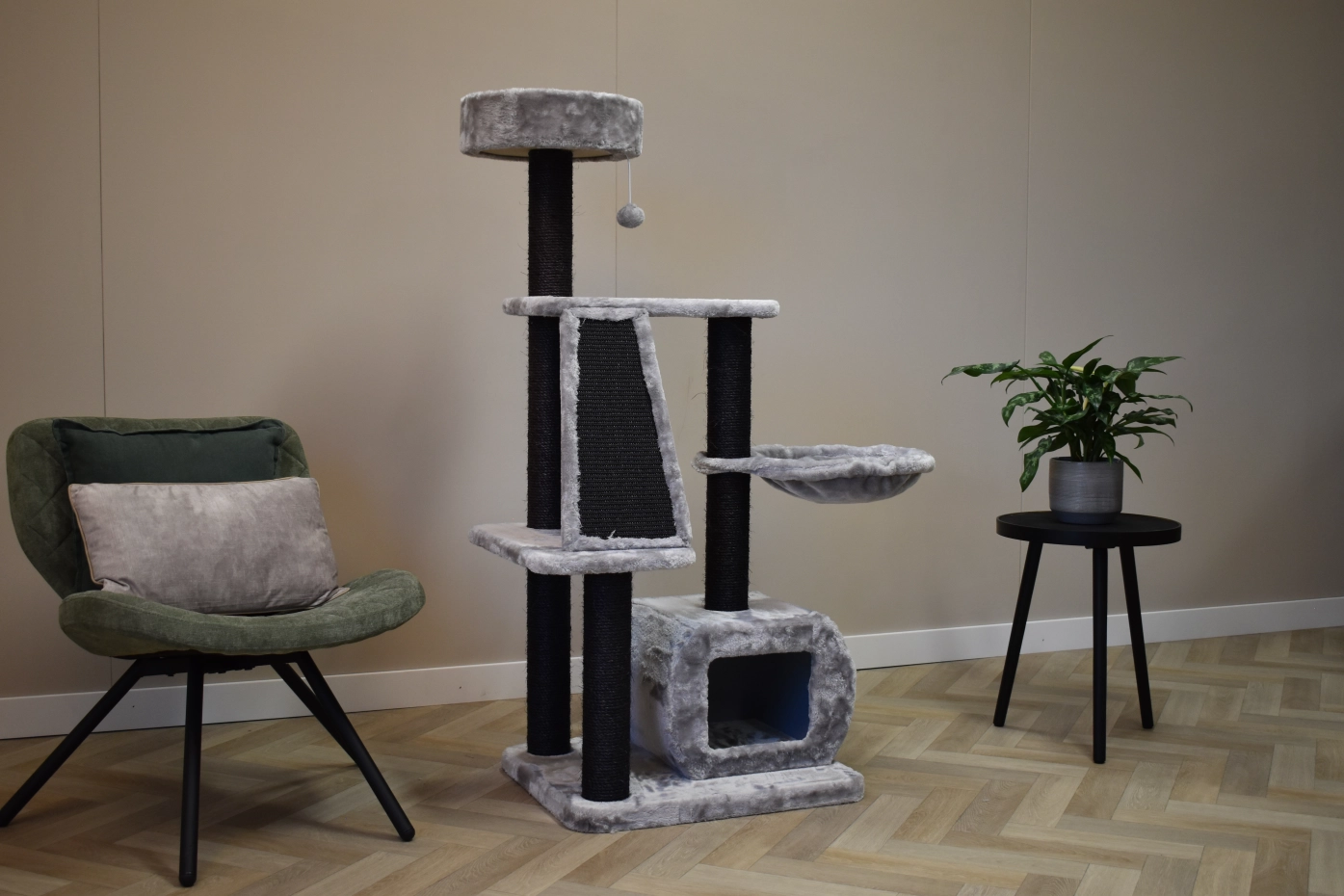 De krabpaal Krabbel biedt veel speelplezier voor uw kat(ten)! Het kattenmeubel heeft zachte ligplateaus, sisal krabpalen en een huisje, om heerlijk in weg te kruipen. Dit leuke kattenmeubel is geschikt voor kittens en kleine tot middelgrote katten.
