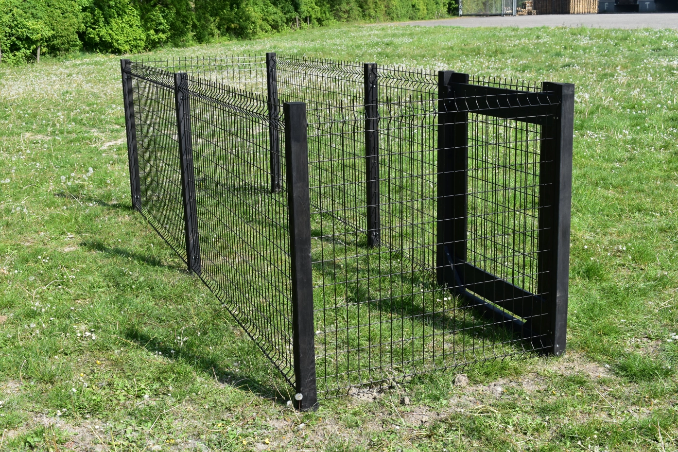 Dierenren Rectangle 4x1,3 meter zwart/zwart is mooie uitbreiding voor uw kippenren of konijnen-ren. Deze grote ruimte zullen huisdieren erg waarderen. De ren is ook andersom te monteren. De stevige poort is voorzien van een schuifgrendel aan de buitenkant zodat dieren deze niet open kunnen doen.