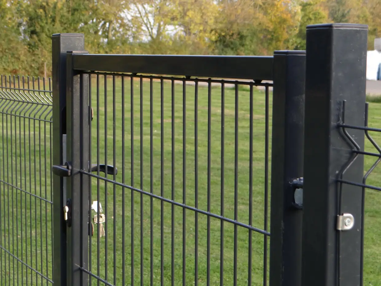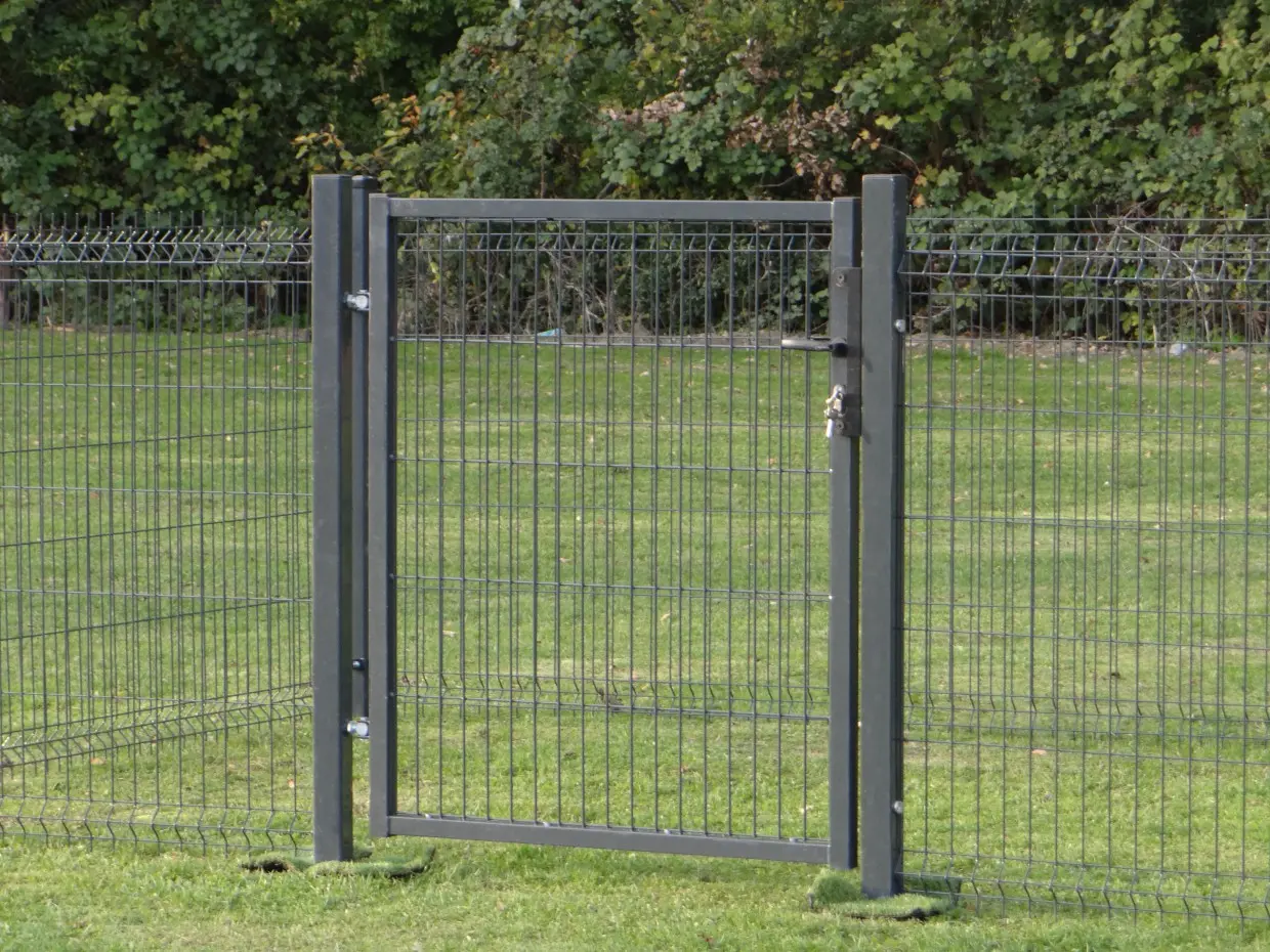 - De poort is voorzien van een cilinderslot en kruk