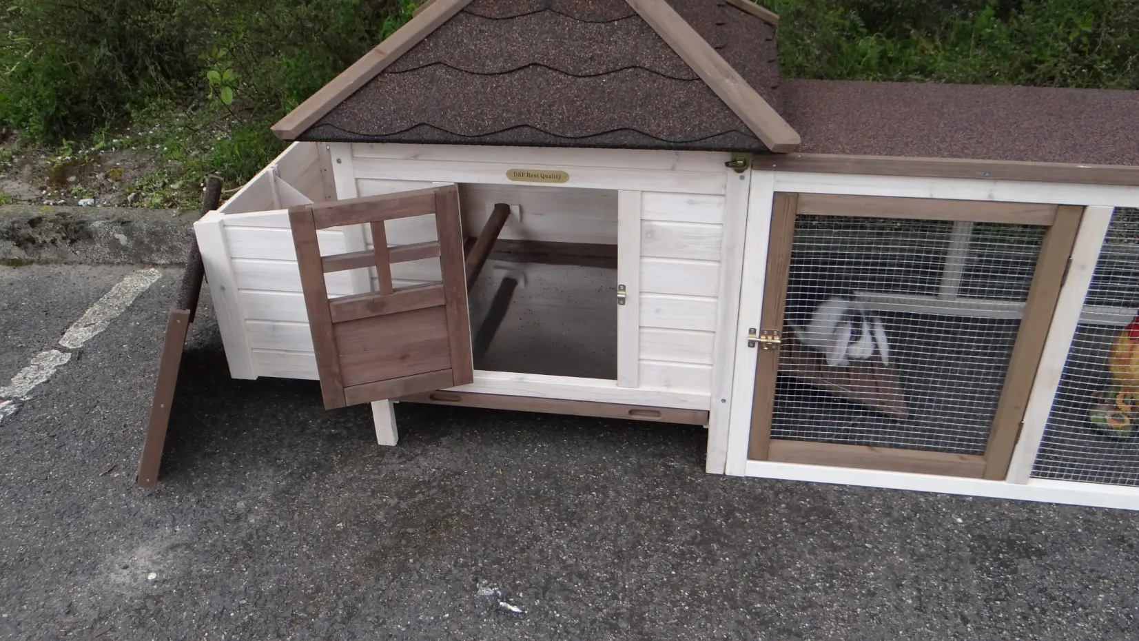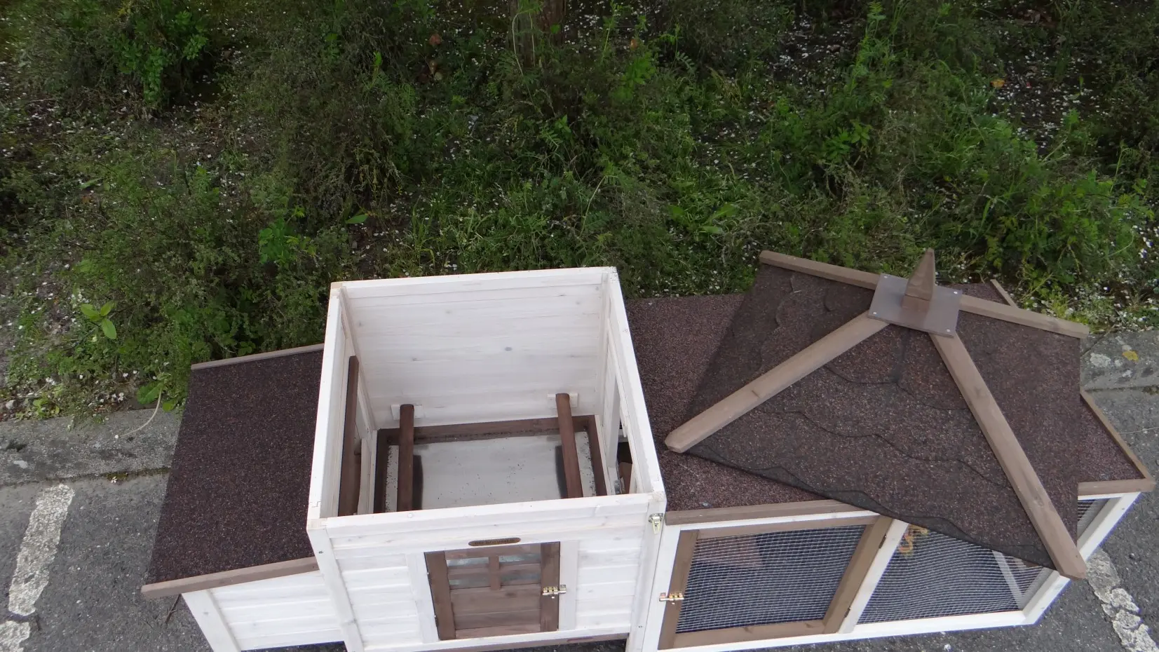 - Het hok is voorzien van een afneembaar dak