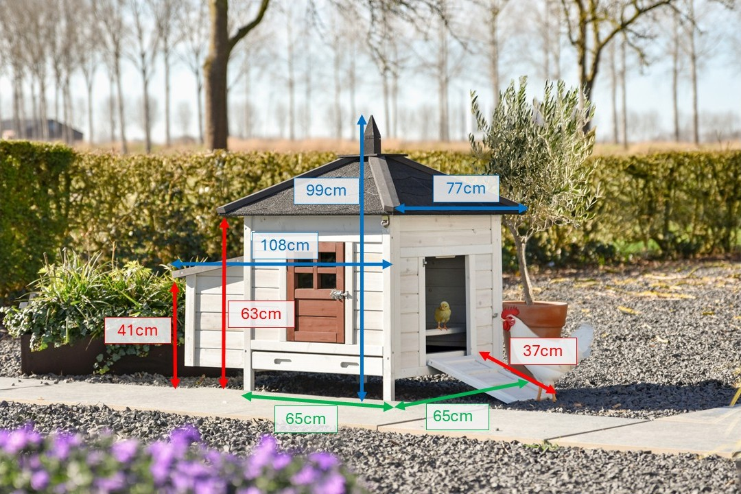 | Buitenwerkse afmetingen incl. dak en nestkast (BxDxH) | 108x77x99cm |