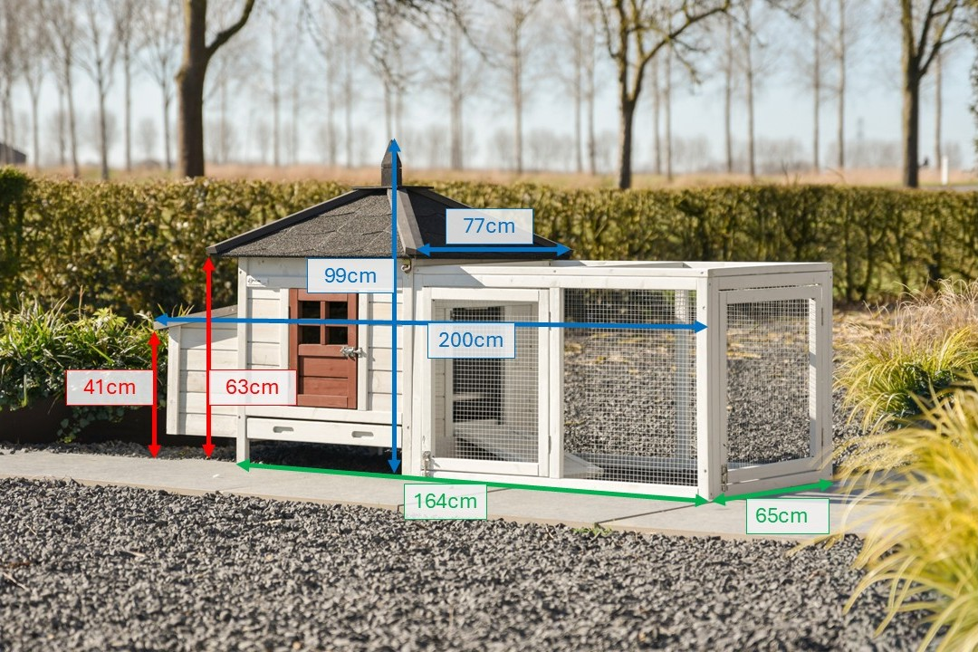 | Buitenwerkse afmetingen incl. dak en nestkast (BxDxH) | 200x77x99cm |