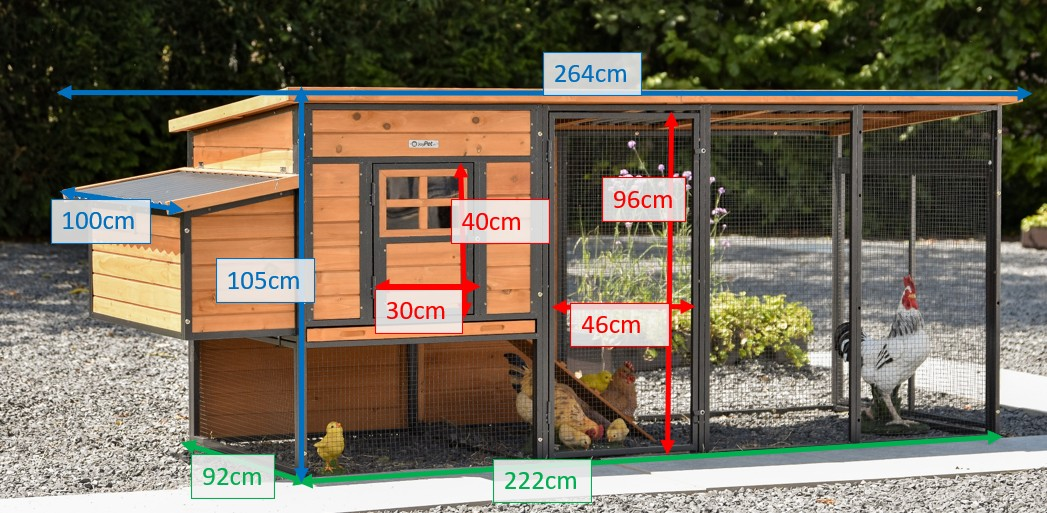 Kippenhok Judy is zeer ruim en praktisch. Het biedt een comfortabel verblijf voor uw Kippen en heeft een groot nachthok voor extra bescherming. Met een handige schoonmaaklade, ruim legnest en een grote ren, is het perfect voor 4 grote kippen tot 9 kleine kippen.