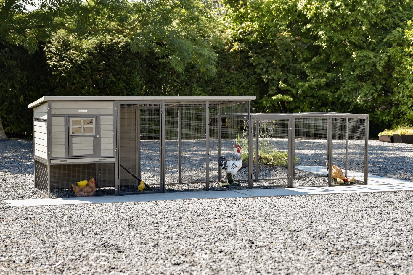 - Het hok is eenvoudig uit te breiden met aanbouwren(nen)
