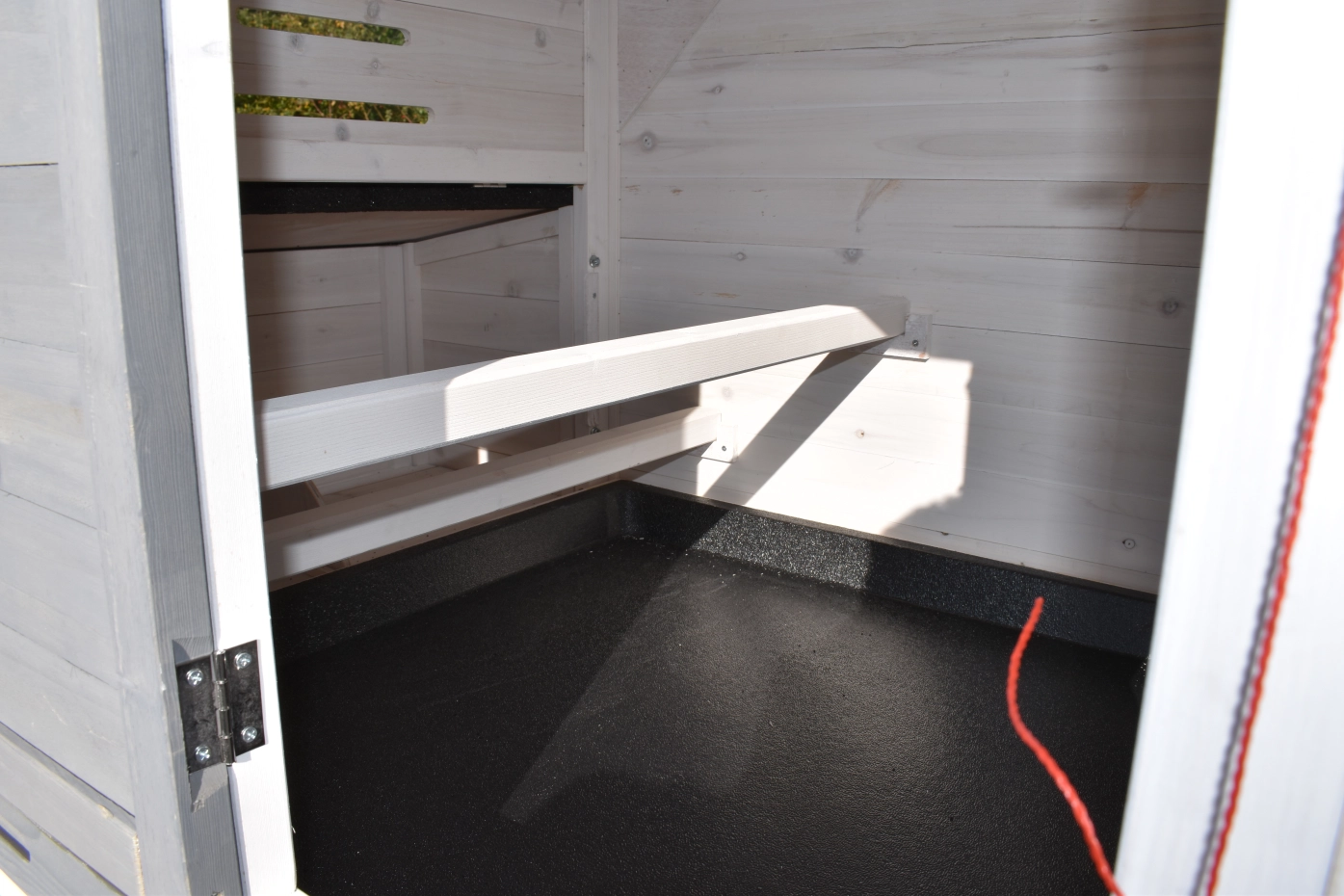 - Wanneer het hok niet op een beschutte plaats staat, dan adviseren wij om het te verankeren