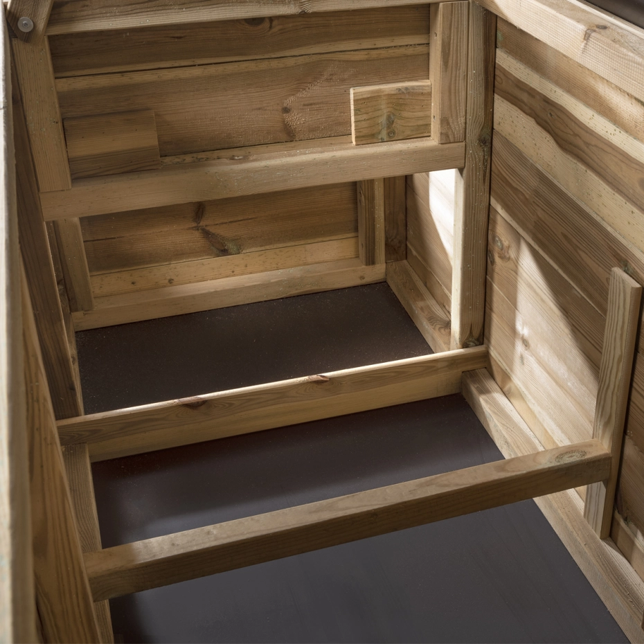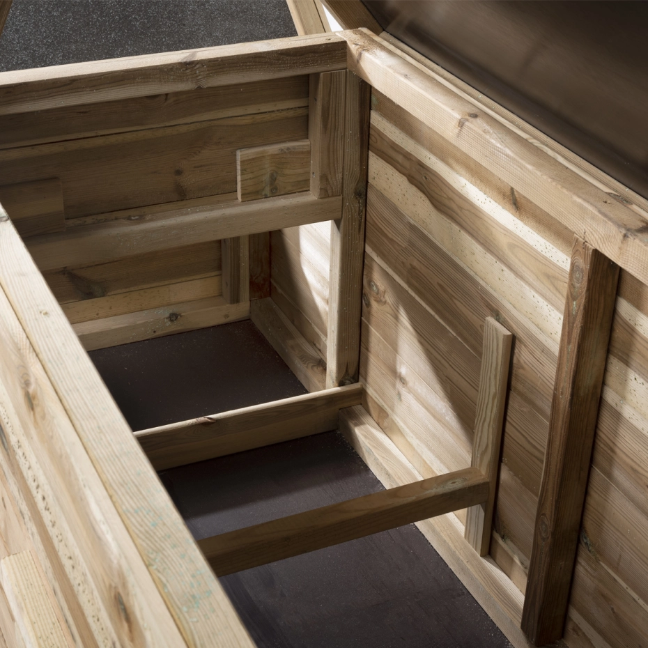 - Dierenverblijf van geïmpregneerd grenen hout, dat maakt het hok onderhoudsvrij en zorgt voor een lange levensduur