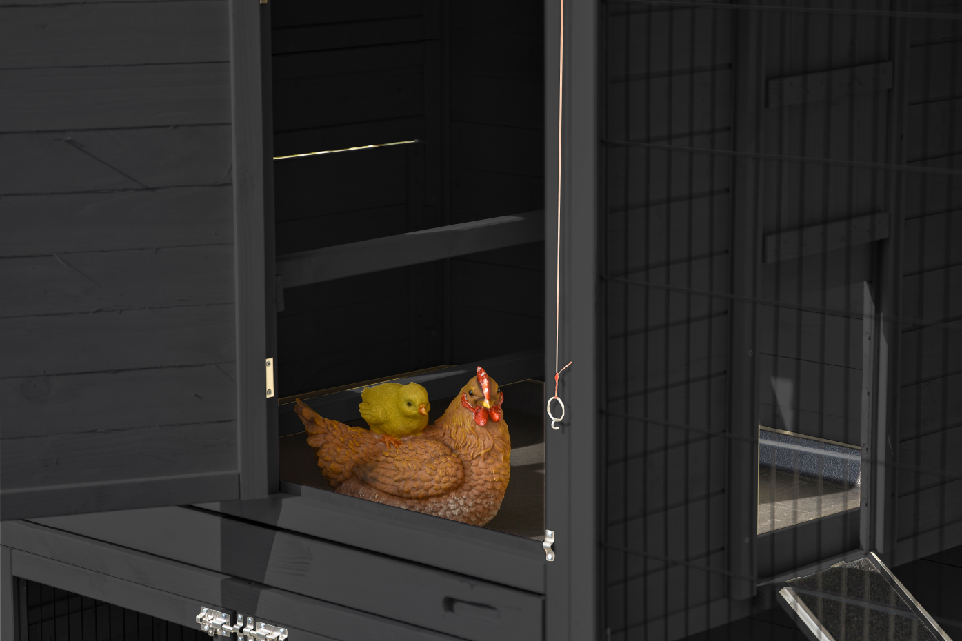 - Nachthok afsluitbaar: luik schuift naar boven/beneden
