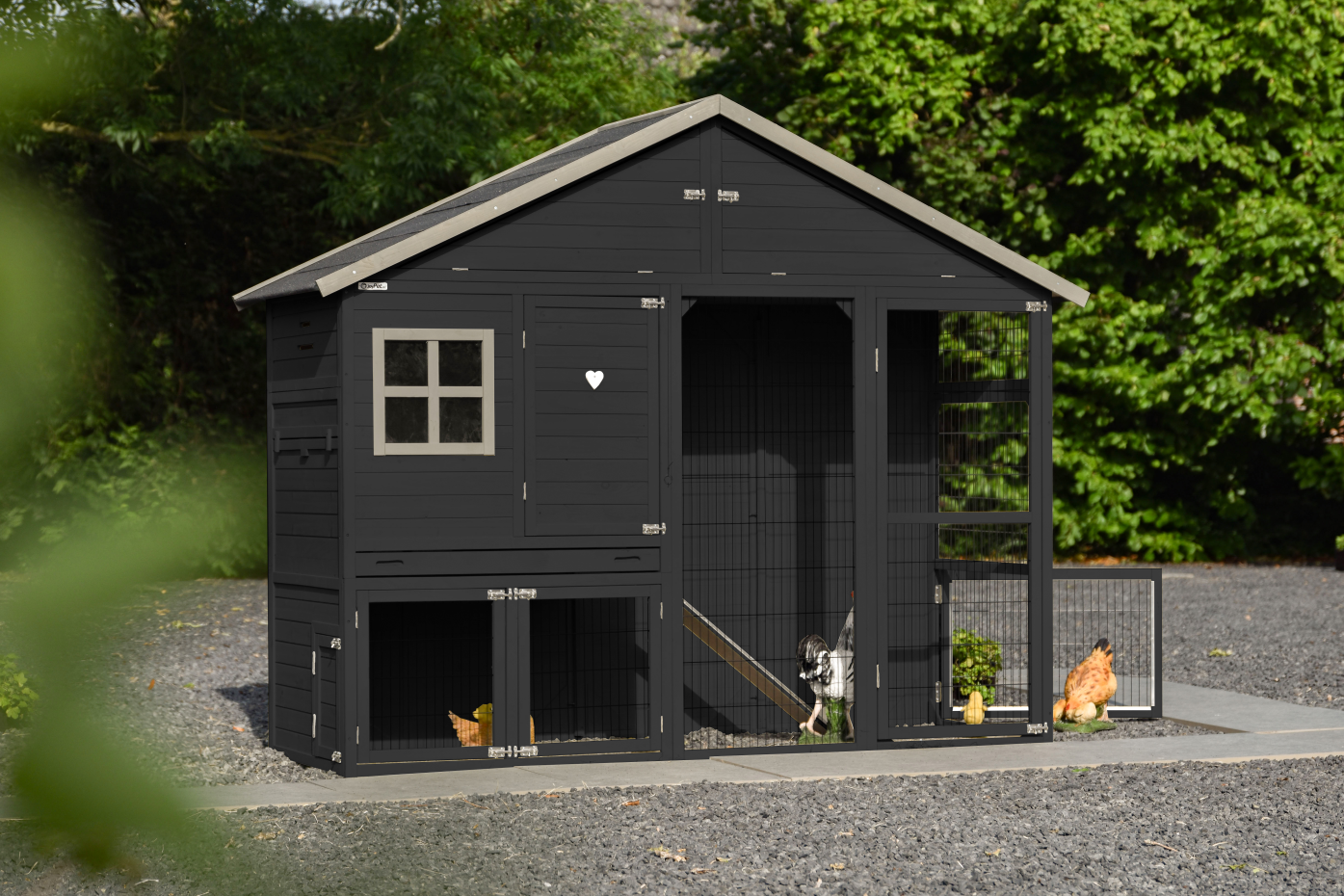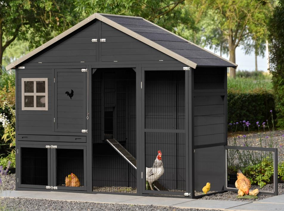 Het grote kippenhok Holiday Large is mooi, handig en ruim. Dit praktische kippenhok heeft een massief houten achterwand en een dichte zijwand met luikje. Dit zorgt voor extra beschutting voor de kippen.