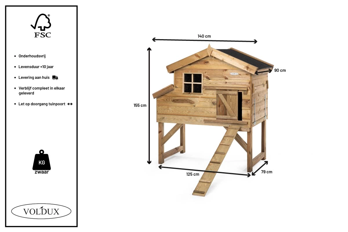 | Buitenwerkse afmetingen incl. dak (BxDxH) | 140x90x155cm |