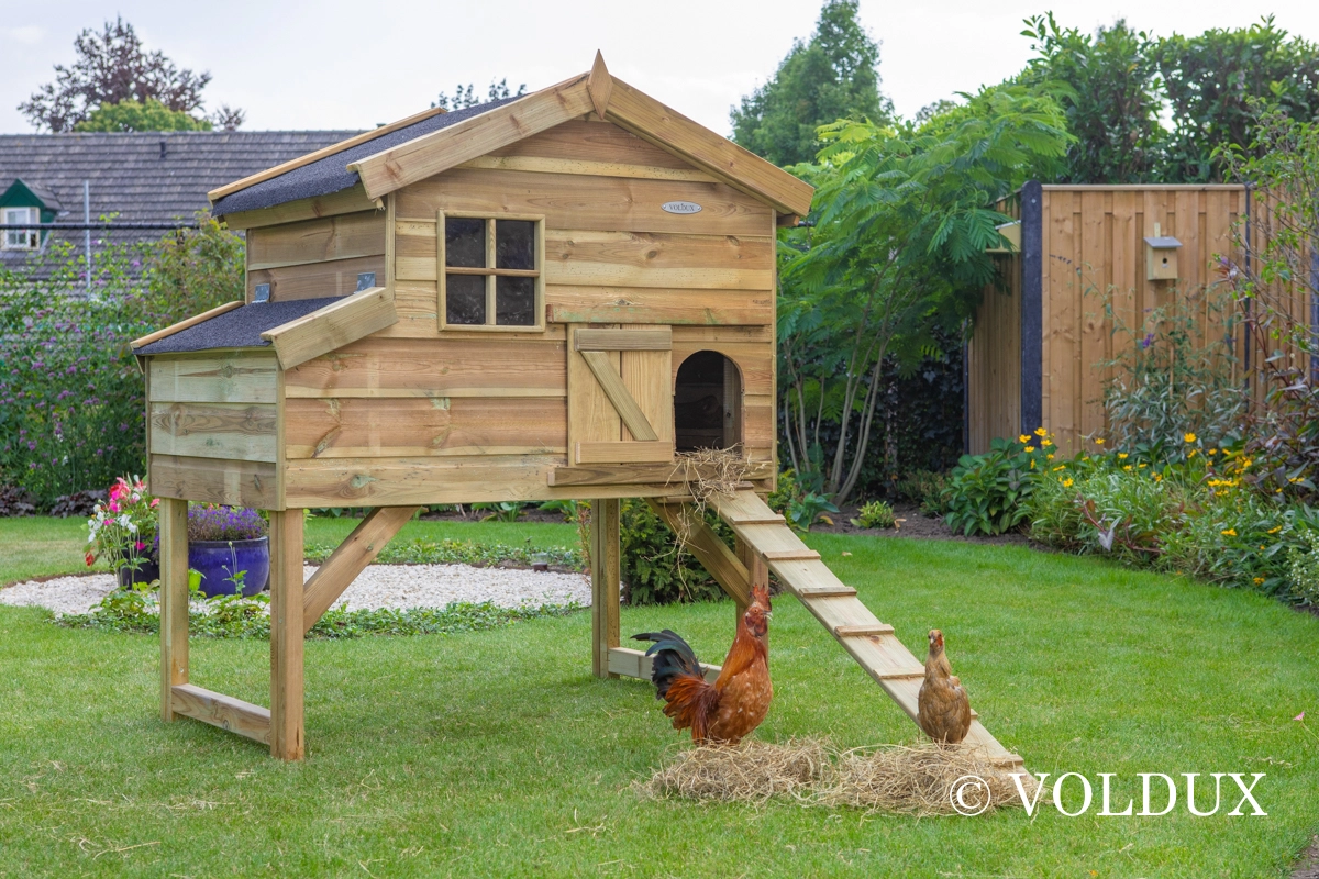 - Dit kippenhok is voorzien van een legnest