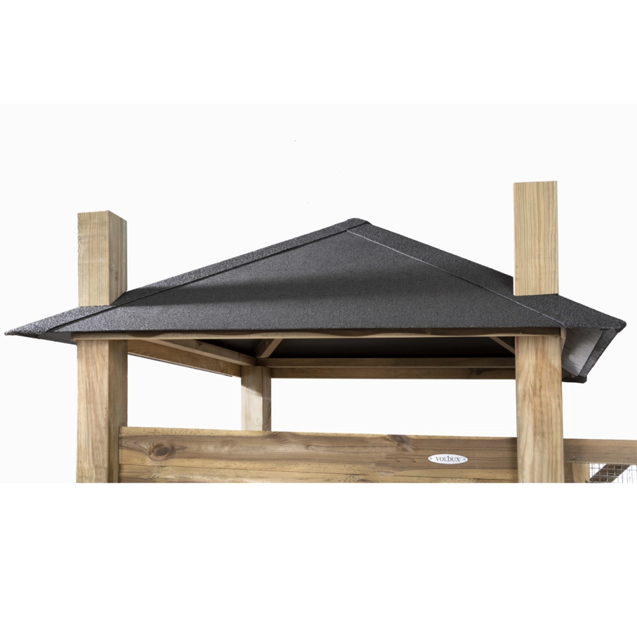 - Het dierenverblijf wordt deels gemonteerd geleverd: het dak is gemonteerd; het overige van het nachthok (en ren) wordt geleverd als bouwpakket