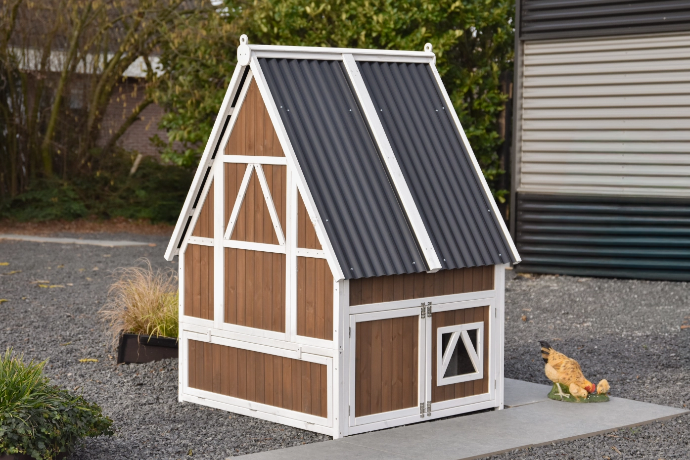• Het hok is voorzien van een kunststof dak