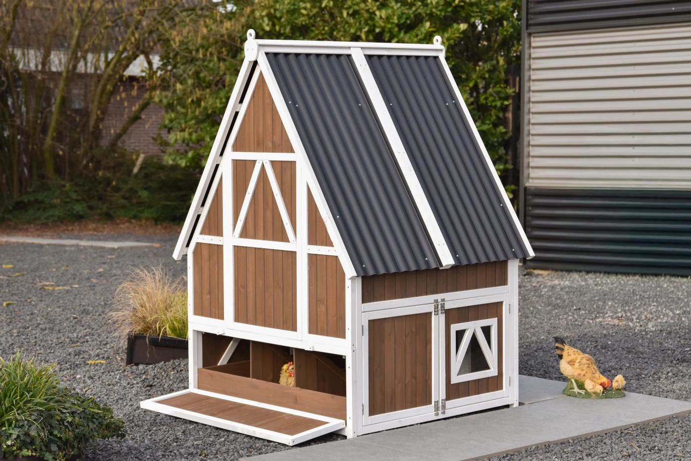 • Dit kippenhok is voorzien van een legnest