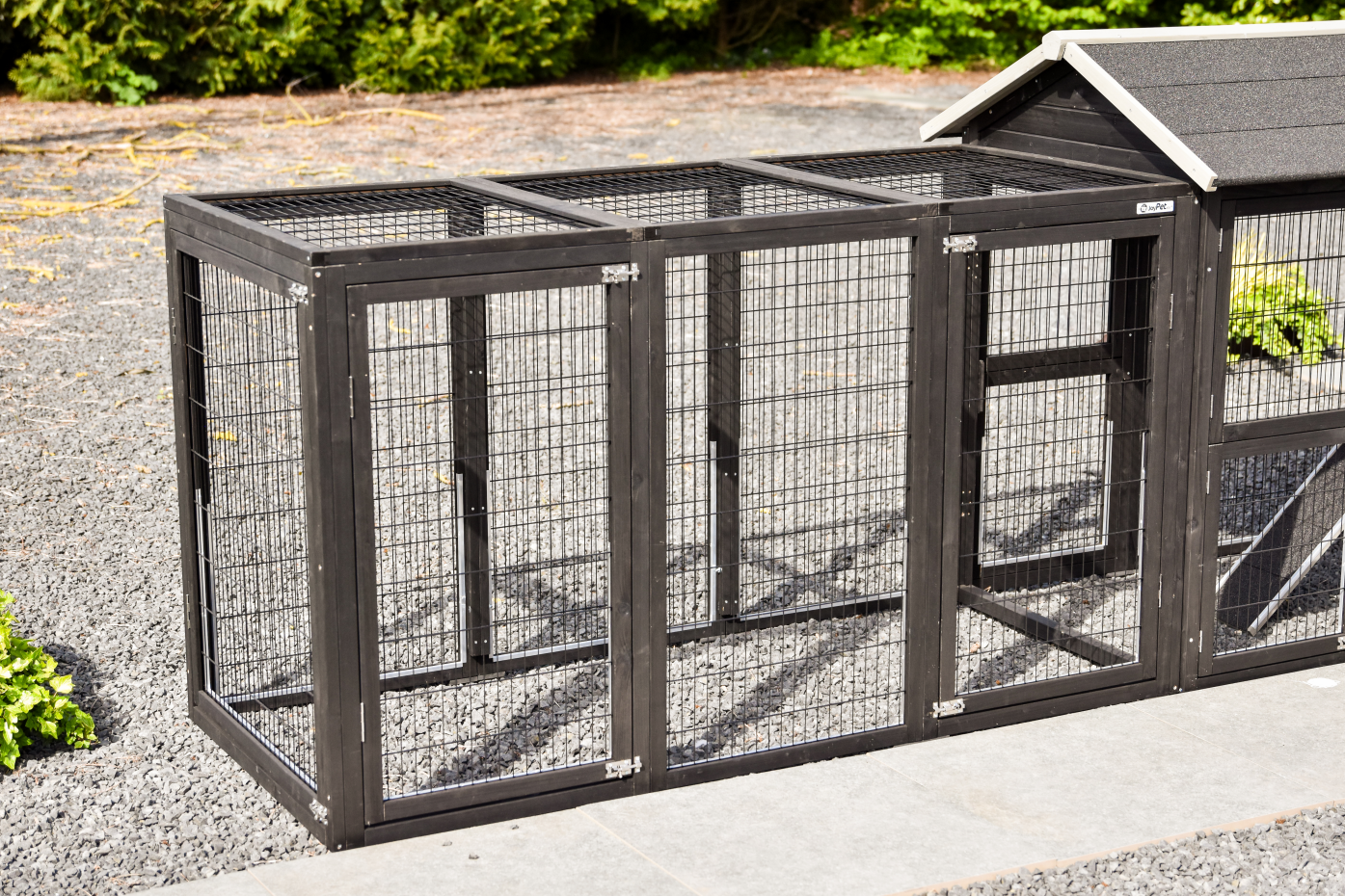 - Om hok en ren te combineren moet er een traliepaneel en/of deur verwijderd worden