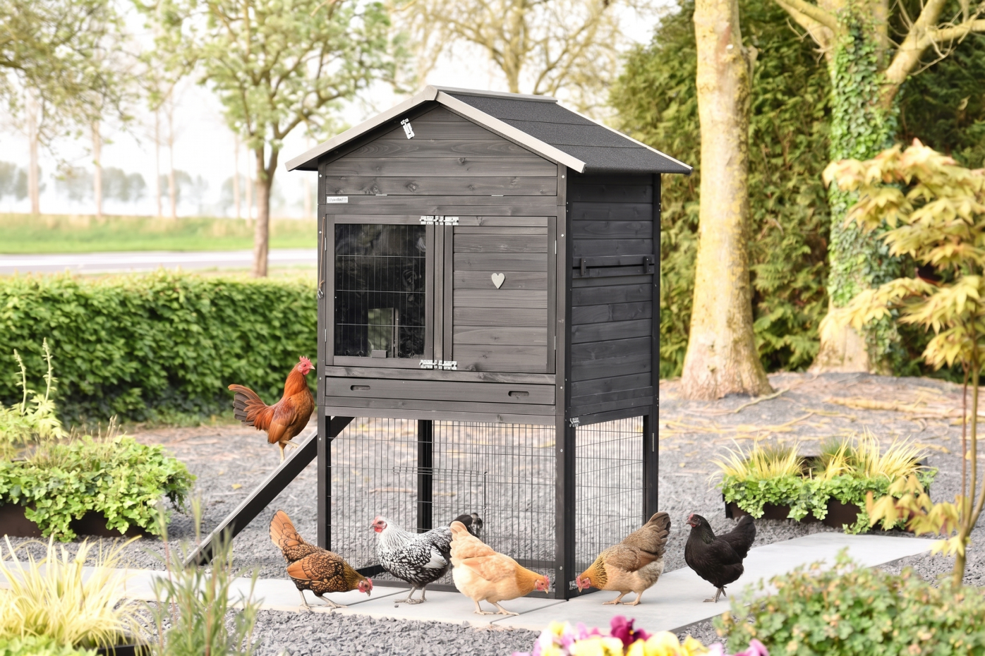 Kippenhok Prestige Large. Kippenhok Prestige Large is een geweldig hok voor uw kippen. Dit grote kippenhok is tot in detail uitstekend afgewerkt met ruime deuren en royaal nachthok. Voor de optimale bescherming staat het kippenhok op rubberen poten. Dit maakt kippenhok Prestige Large zeer praktisch in gebruik. Kippenhok Prestige Large is eindeloos uitbreidbaar met o.a. aanbouwrennen.