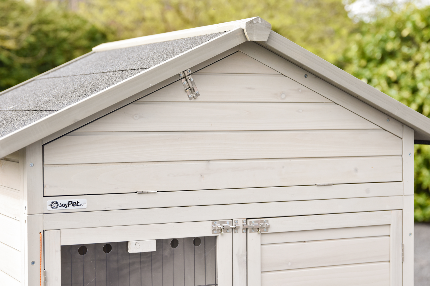 - Het hok heeft een dak met dakleer