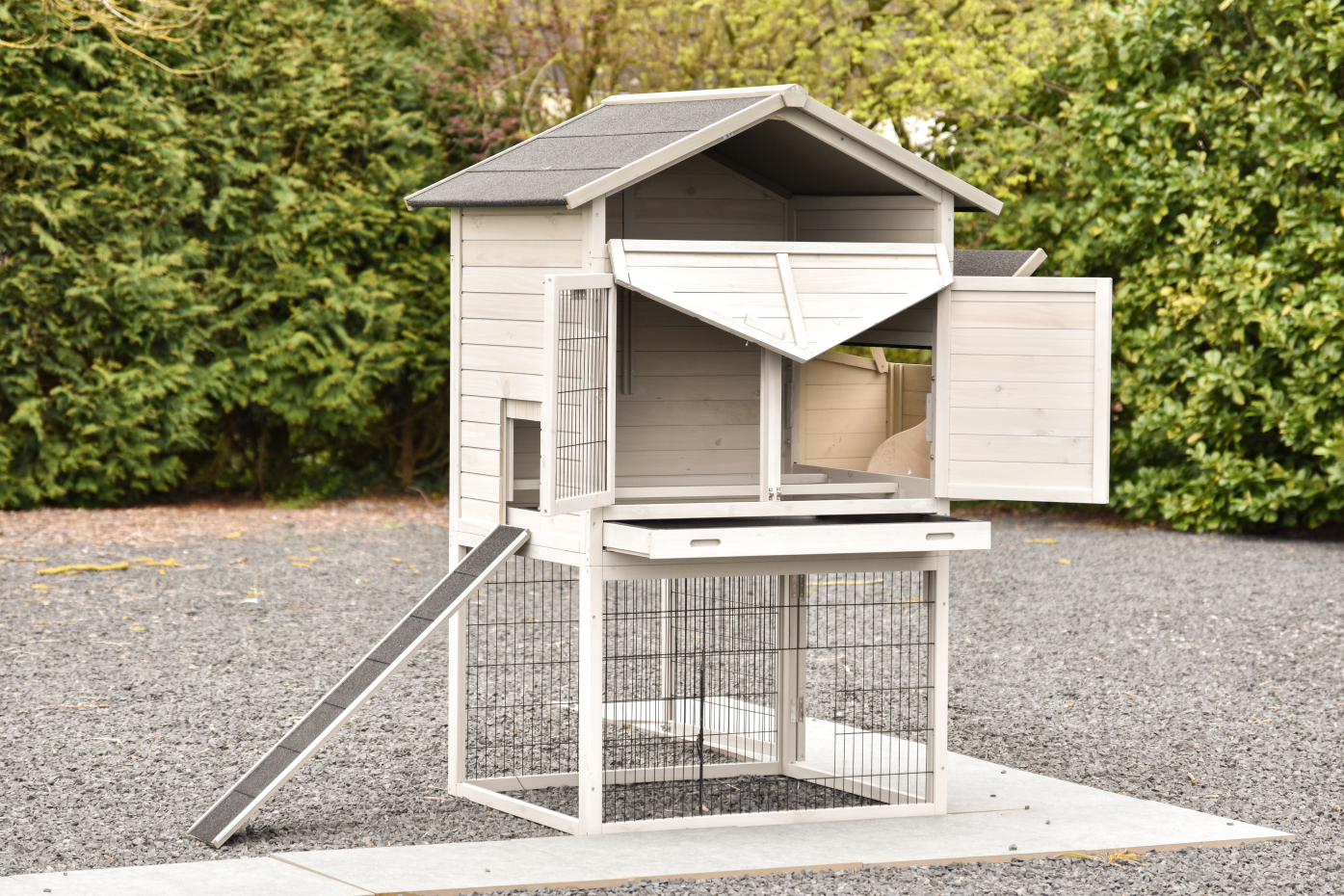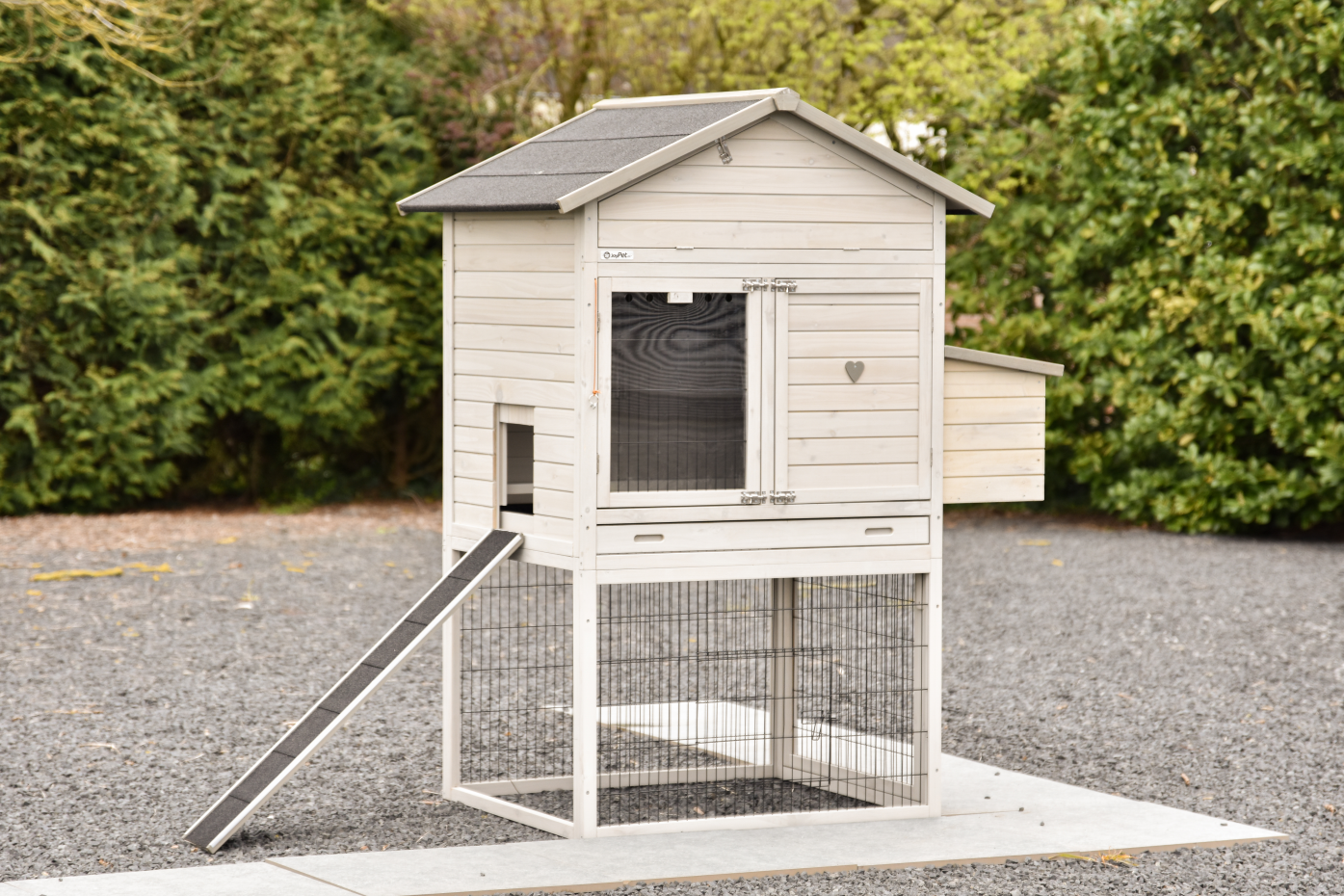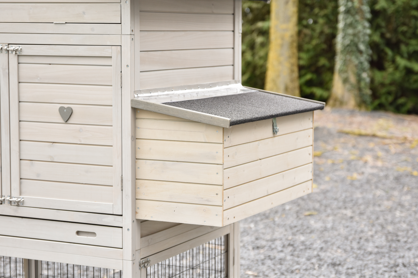 Dankzij de rubberen poten is het hok beschermd tegen optrekkend vocht. Bovendien is het Kippenhok Prestige Large met legnest eenvoudig uit te breiden met aanbouwrennen voor extra ruimte.
