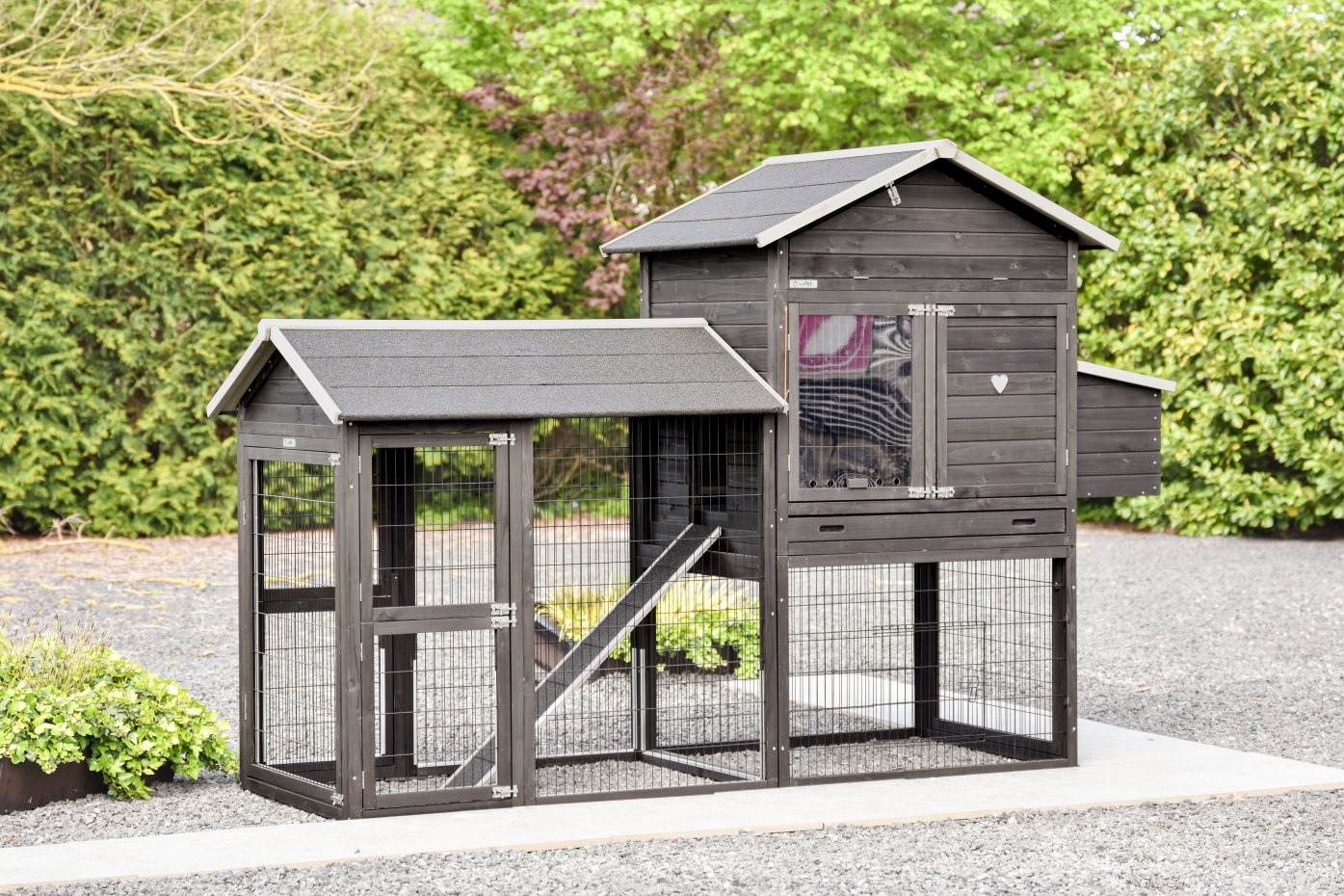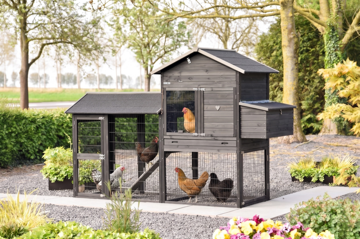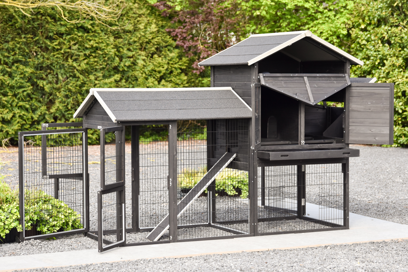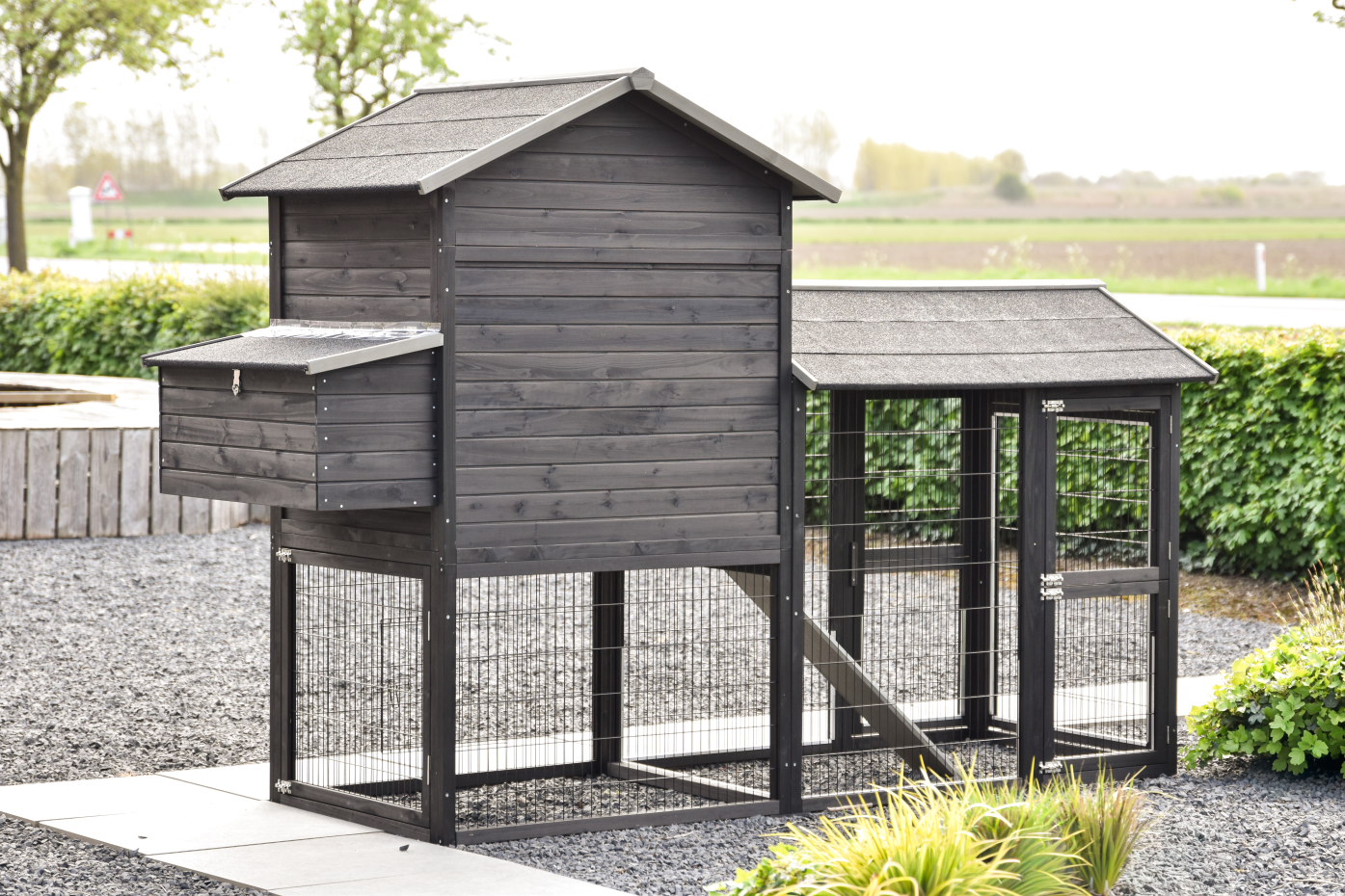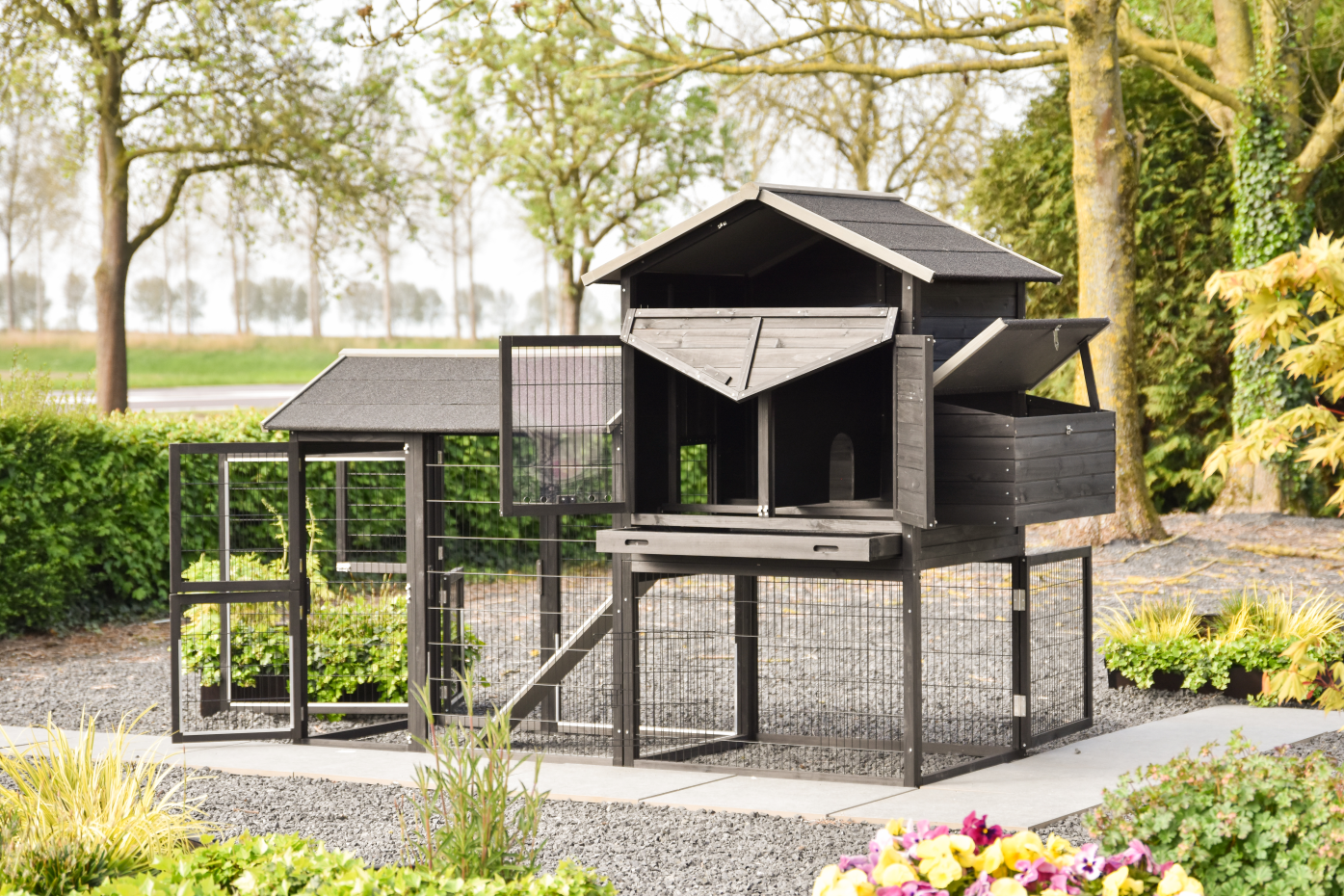 Een ruim en praktisch kippenhok waarin uw kippen zich direct thuis voelen. Het royale nachthok en het handige legnest zorgen voor comfort en gemak, terwijl de grote deuren het onderhoud eenvoudig maken. Aan het hok is een aanbouwren bevestigd, zodat uw kippen direct beschikken over extra leefruimte. Dankzij de rubberen poten is het hok beschermd tegen optrekkend vocht. Bovendien is het Kippenhok Prestige Large met legnest eenvoudig uit te breiden met aanbouwrennen voor nog meer ruimte.