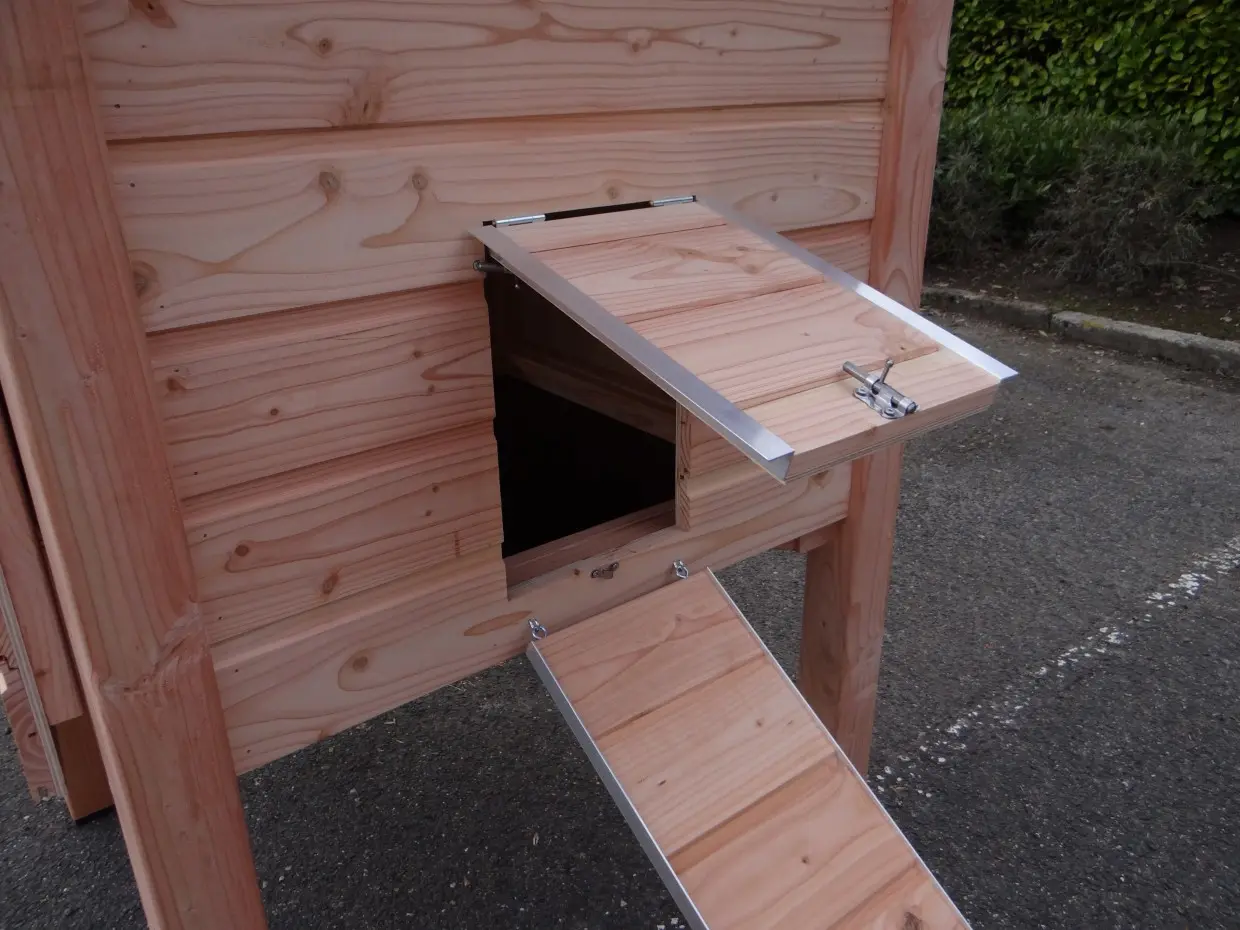 Kippenhok professional enkel Douglas is van zeer hoog kwaliteitsniveau. Douglas hout, keramische dakpannen, rvs sloten, aluminium afwerking, betonmultiplex beplating in de mestlades en legnest. Dit zijn stuk voor stuk materialen voor langdurig, prettig gebruik. De binnenkant is helemaal betimmerd met multiplex platen zodat er zo min mogelijk kieren in het nachthok zijn.