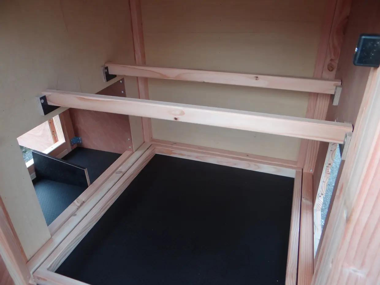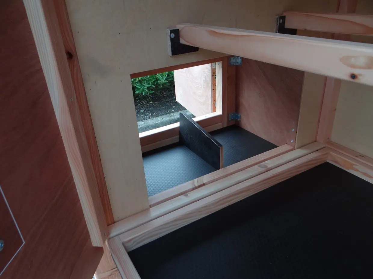 - De binnenkant van het nachthok is betimmerd met hardhout multiplex
