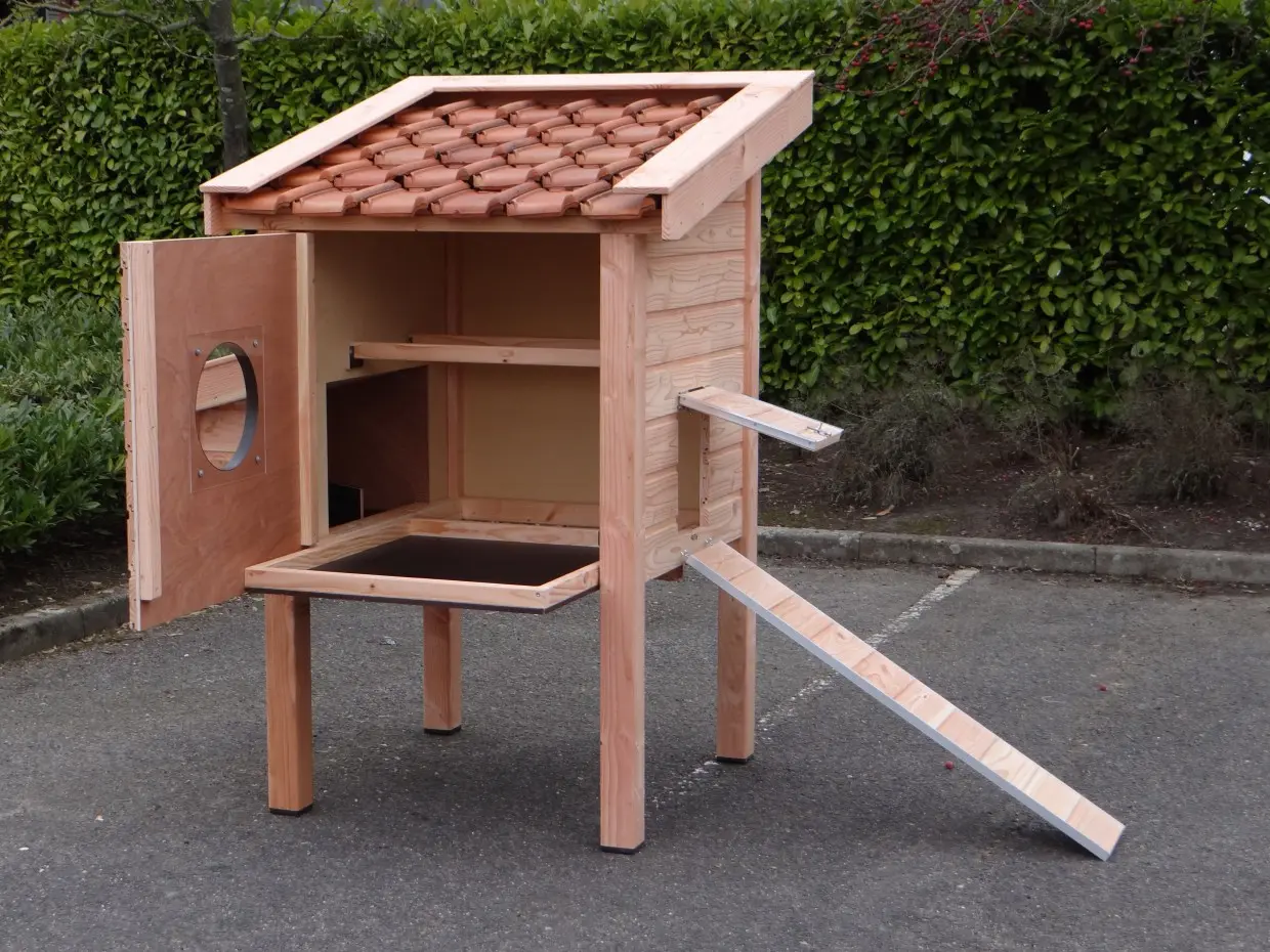 - Als de luchtvochtigheid buiten hoog is, wordt het ook vochtig in een hok. Om schimmelvorming te voorkomen kunt u de binnenkant van het hok beitsen.