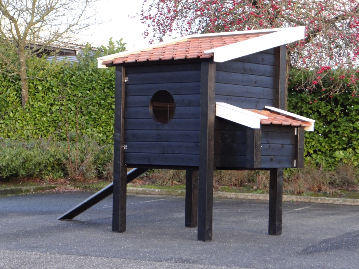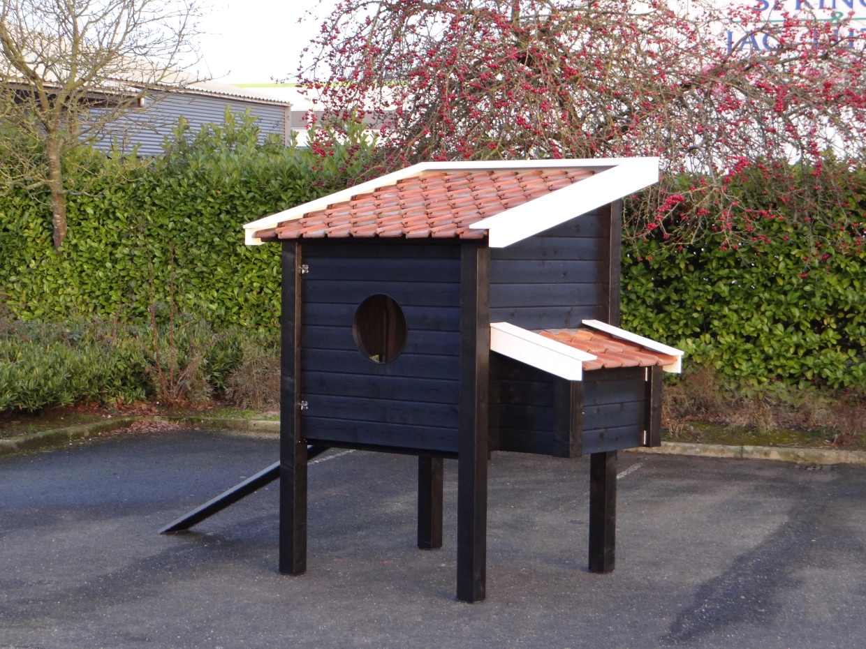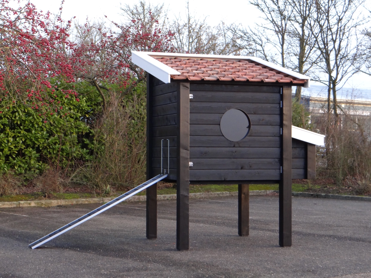Kippenhok Professional Enkel XXL zwart-wit is een kippenhok van zeer hoge kwaliteit. Dit luxe kippenhok is gemaakt van geïmpregneerd hout en heeft keramische dakpannen, RVS-sloten, aluminium afwerking, betonmultiplex beplating in de mestlades en een legnest. Dit zijn stuk voor stuk materialen voor langdurig, prettig gebruik. Kippenhok Professional is een kippenhok, gemaakt met oog voor design en zeer veel gebruiksgemak.