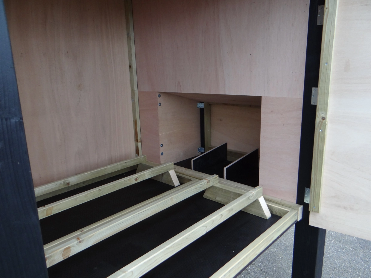 - De binnenkant van het nachthok is betimmerd met hardhout multiplex