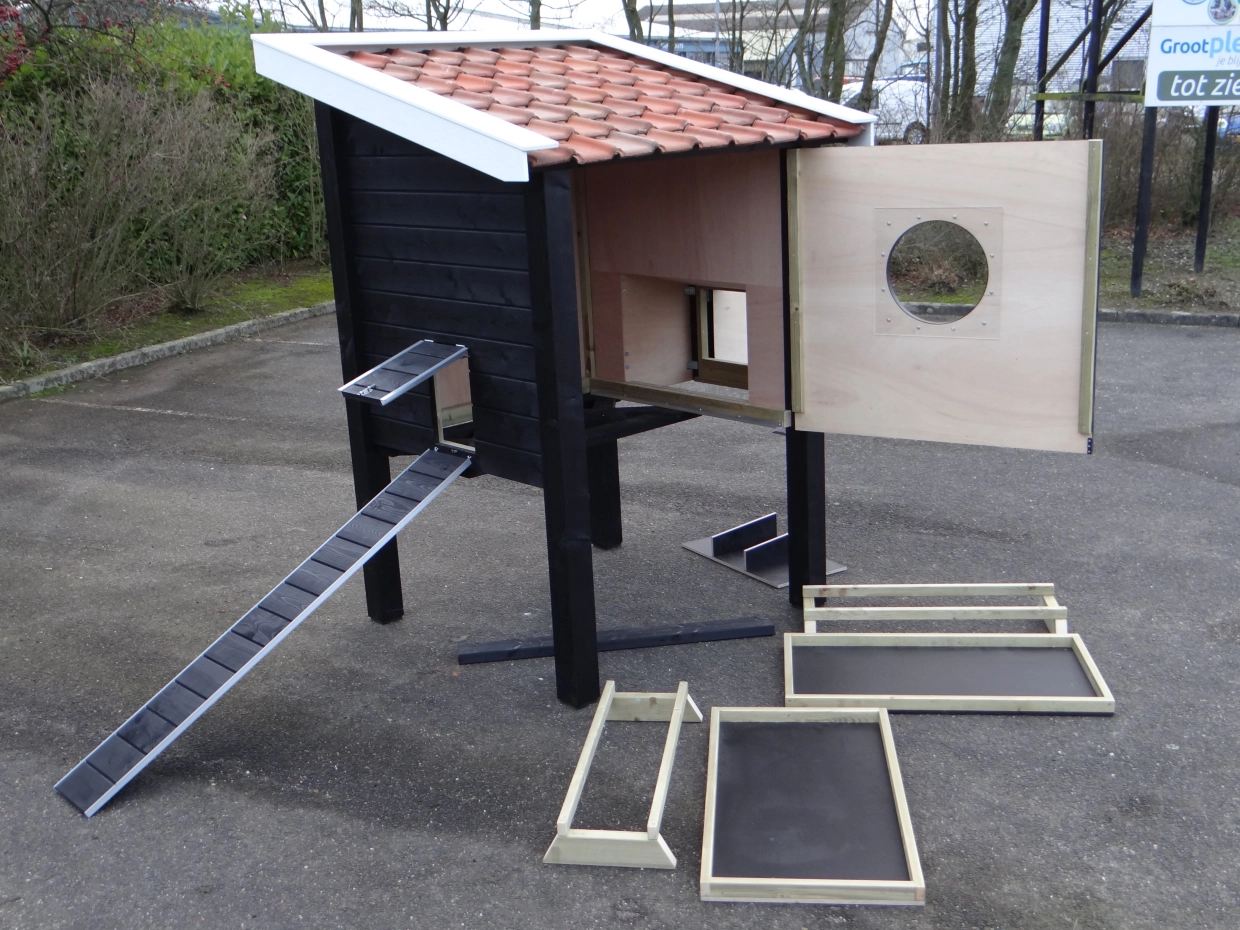 - Dit kippenhok is voorzien van kunststof voetjes