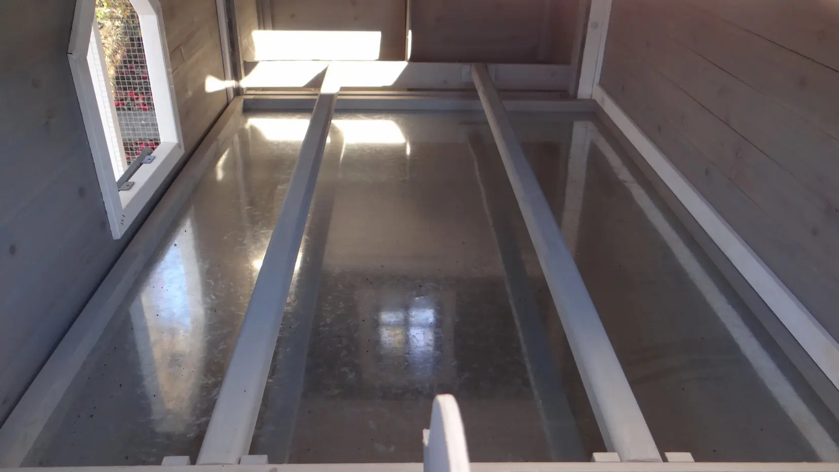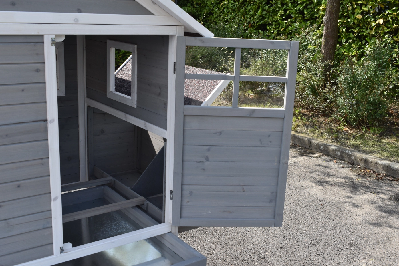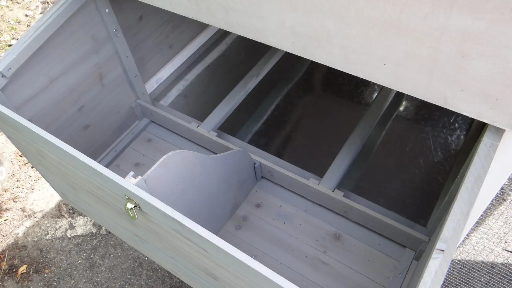 - Metalen schuiflade (zink) om het hok handig schoon te maken