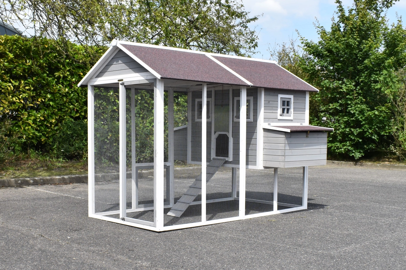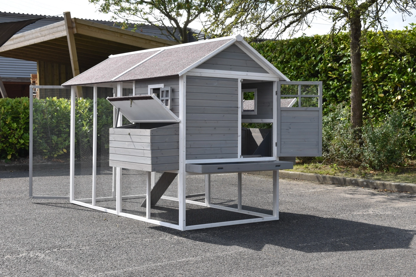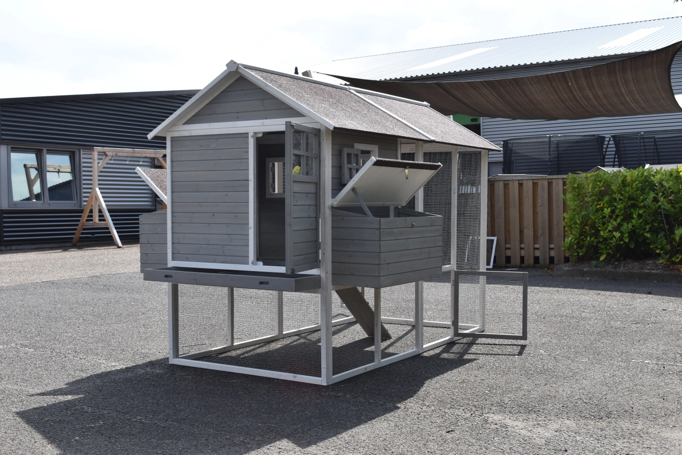 - Dit kippenhok is voorzien van een legnest