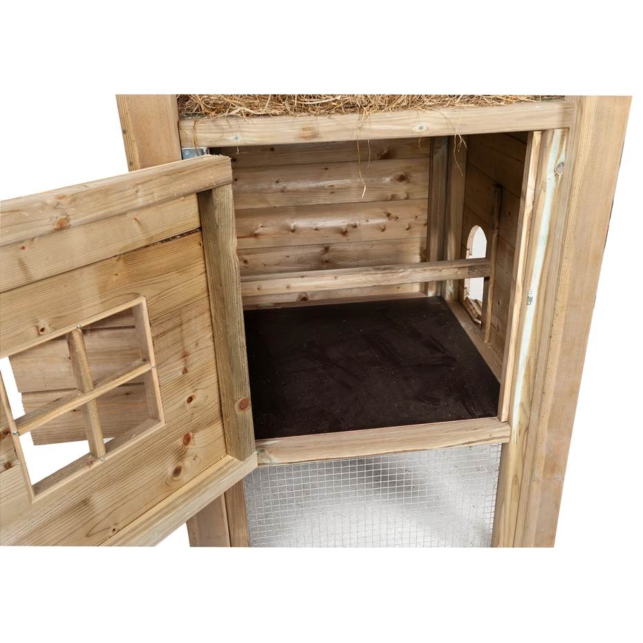 - Dierenverblijf van geïmpregneerd grenen hout, dat maakt het hok onderhoudsvrij en zorgt voor een lange levensduur