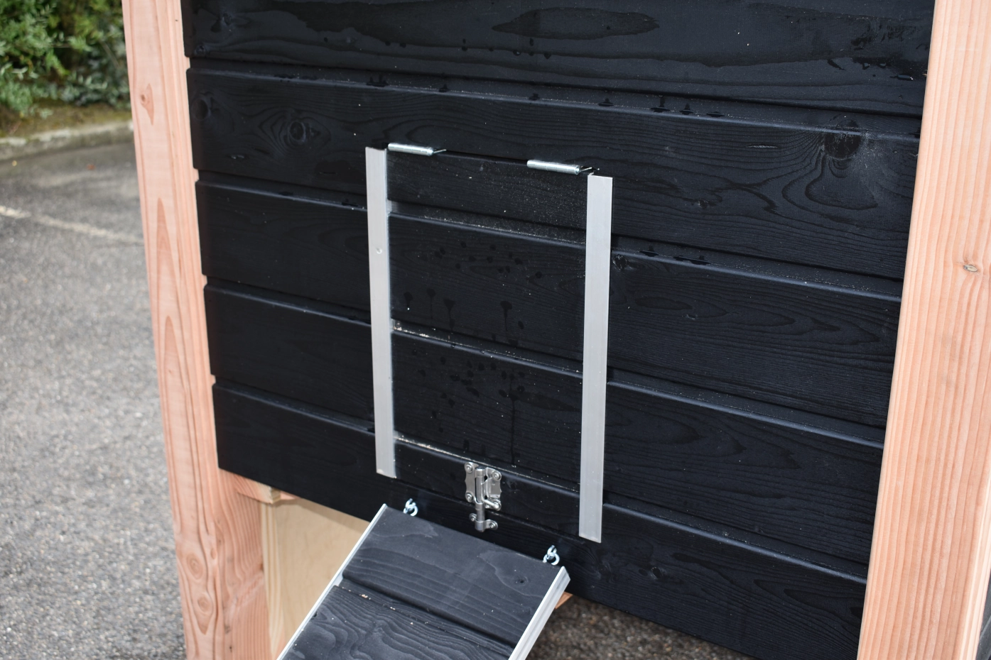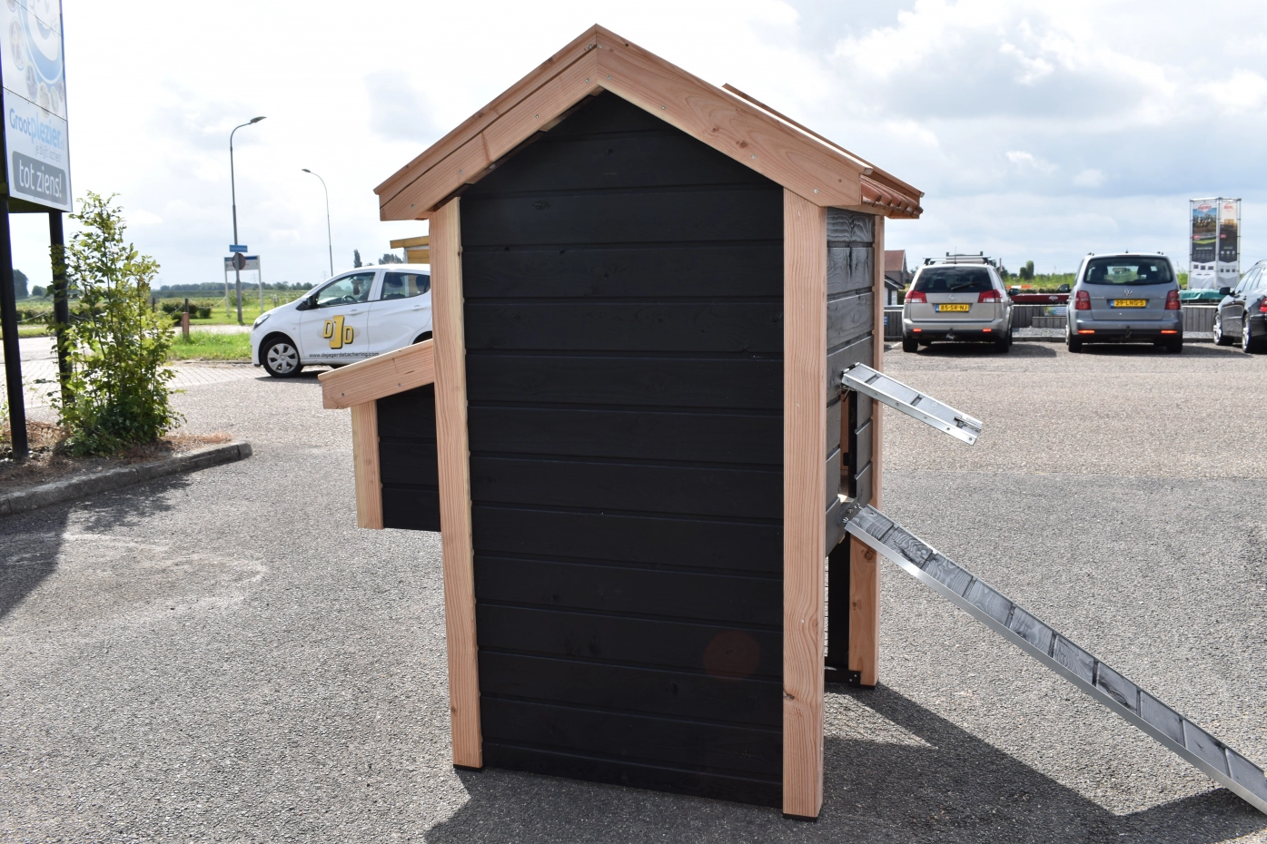 - Let op! Het kippenhok wordt compleet gemonteerd geleverd. De doorgang moet dan ook minimaal gelijk zijn aan de diepte van het hok.