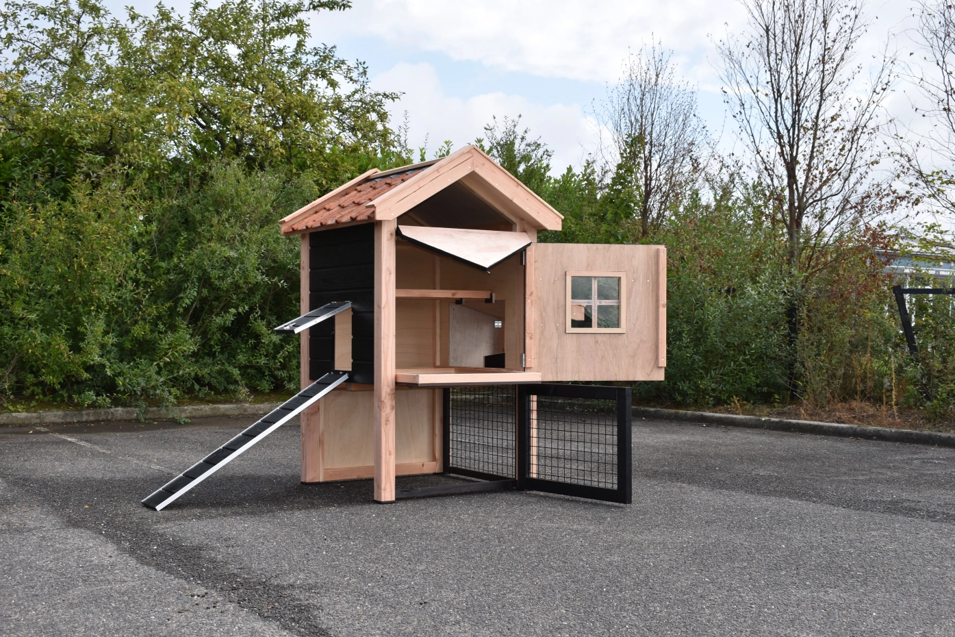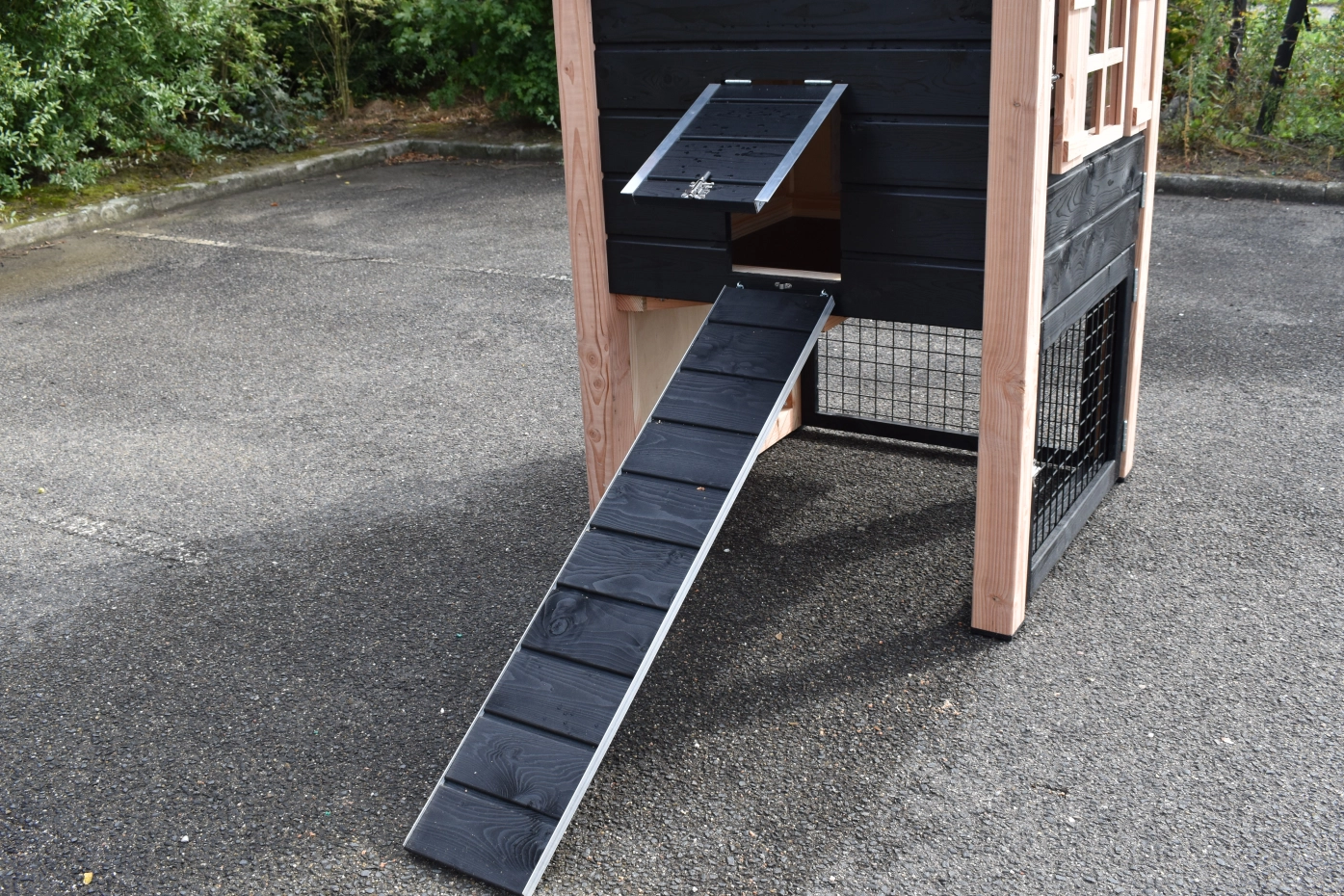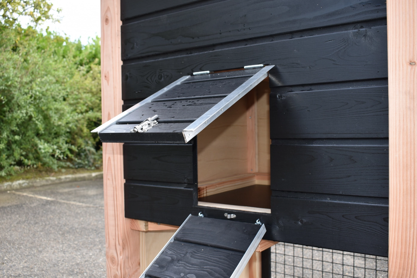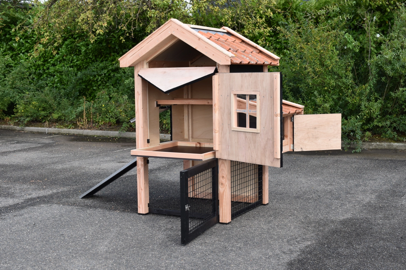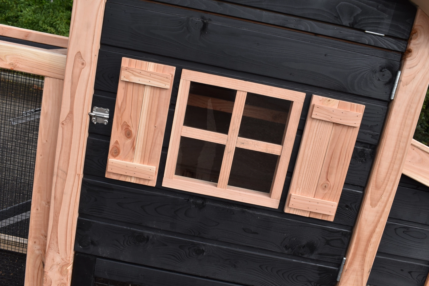 Kippenhok Special is een kippenhok van zeer hoge kwaliteit. Dit luxe kippenhok is gemaakt van Douglashout en heeft keramische dakpannen, RVS-sloten, aluminium afwerking, betonmultiplex beplating in de mestlades en een legnest. Dit zijn stuk voor stuk materialen voor langdurig, prettig gebruik. Kippenhok Special is een kippenhok, gemaakt met oog voor design en zeer veel gebruiksgemak.